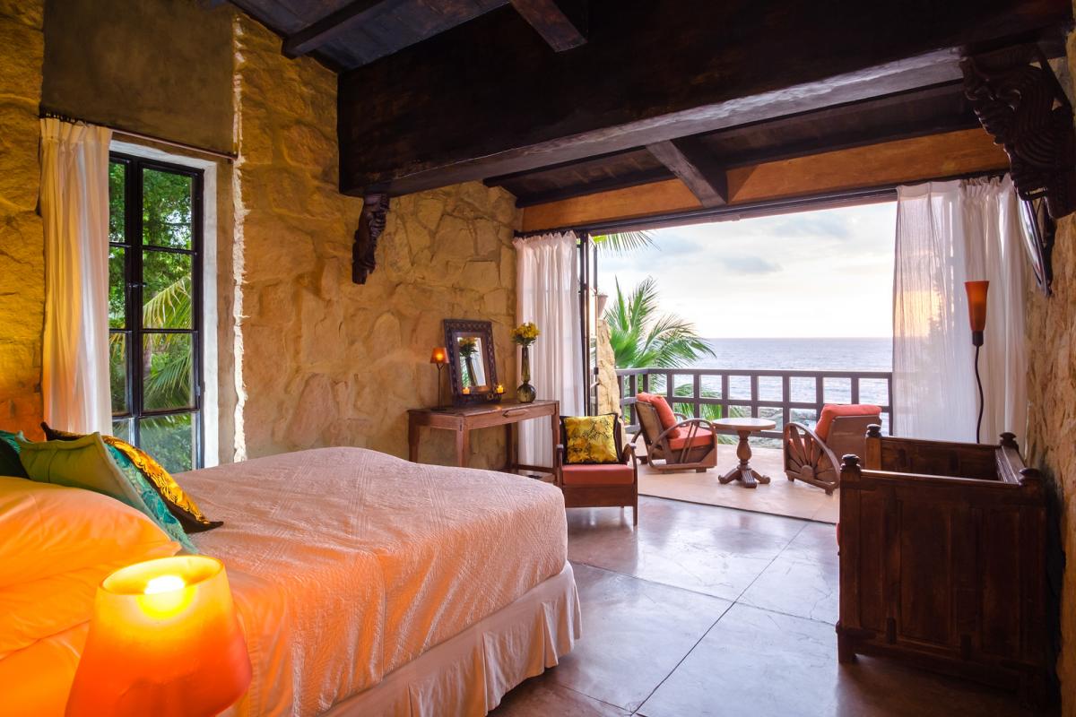 - Bedroom 4: King bed, en suite bathroom, hair dryer, robes, toiletries, AC, ceiling fan, private terrace. This suite works well for guests who want to be within close proximity to Bedroom 3. These two bedrooms can be set up like a two-bedroom suite, with a door to thecommon area that can be closed for privacy or for restricting access for children. This bedroom has the best outdoor space in the house, many guests like to use this large terrace for sunset cocktails due to the fabulous sunset views.