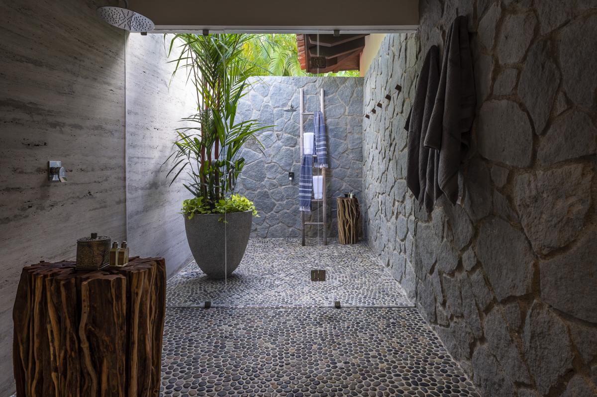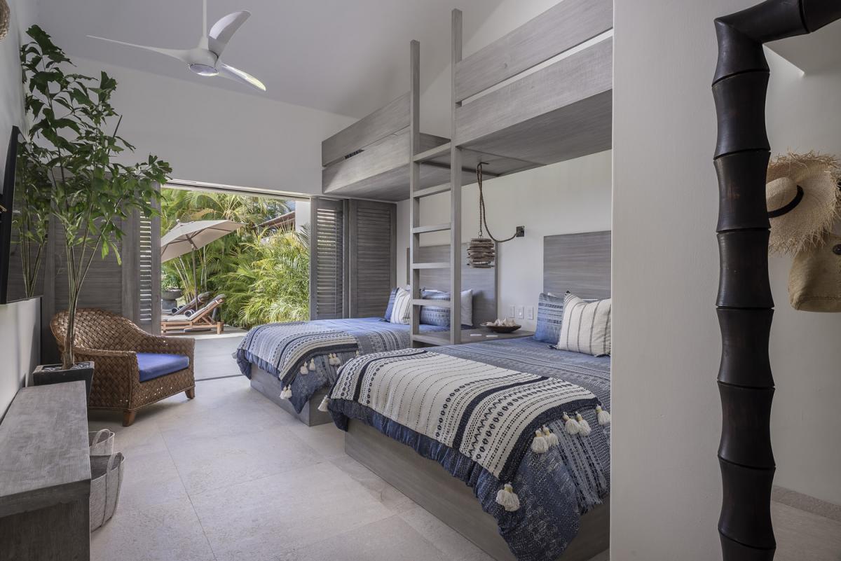 This 3 bedroom stunning single level house in Las Palmas Punta Mita impresses guests right from the start with a moroccan light fixture and beautiful large carved wooden door that leads you into the villa. 3 Bedroom Villa Las Palmas can sleep up to 10 guests, it comes with a master suite, a bunk and guest room.