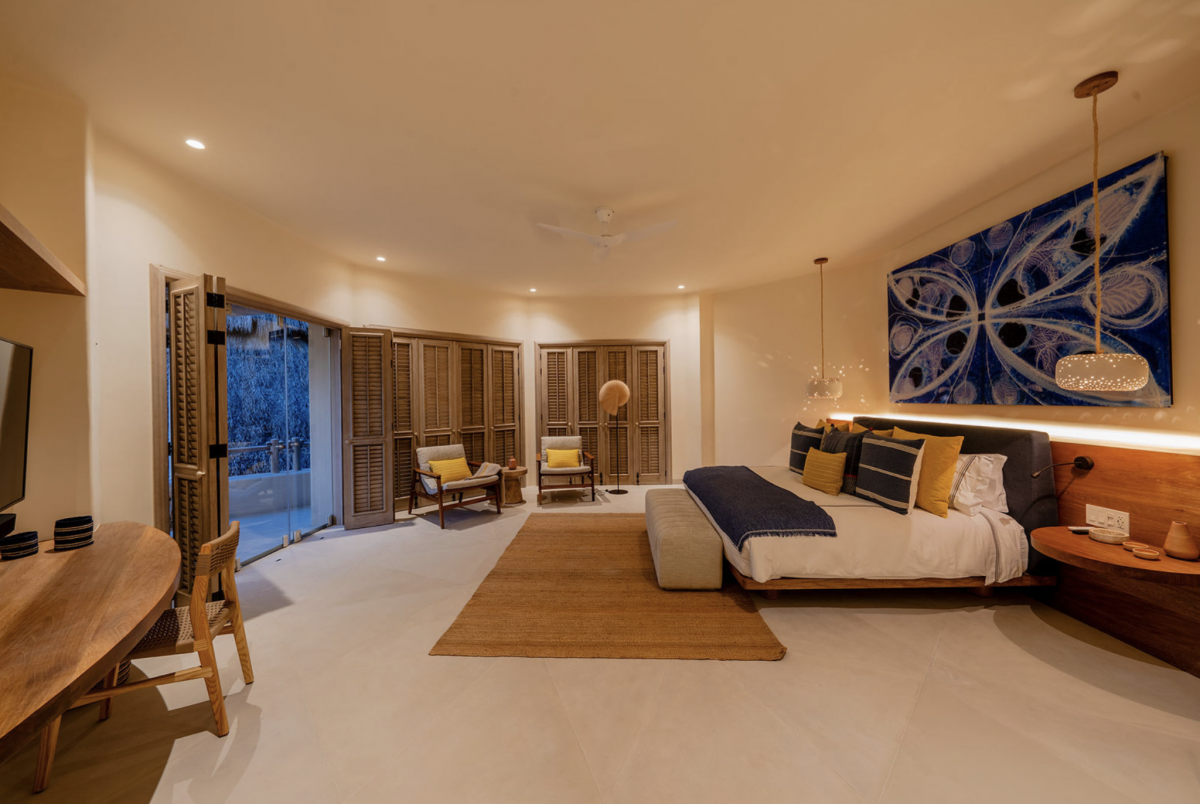 - Bedroom 4: King bed, en suite bathroom with stand along shower & bathtub, walk-in closet, TV, AC, desk, safe, ceiling fan, private terrace, access to pool area, ocean view