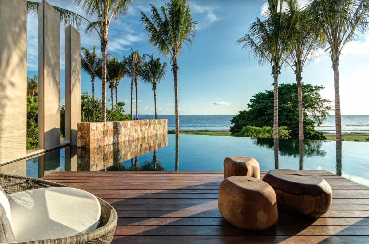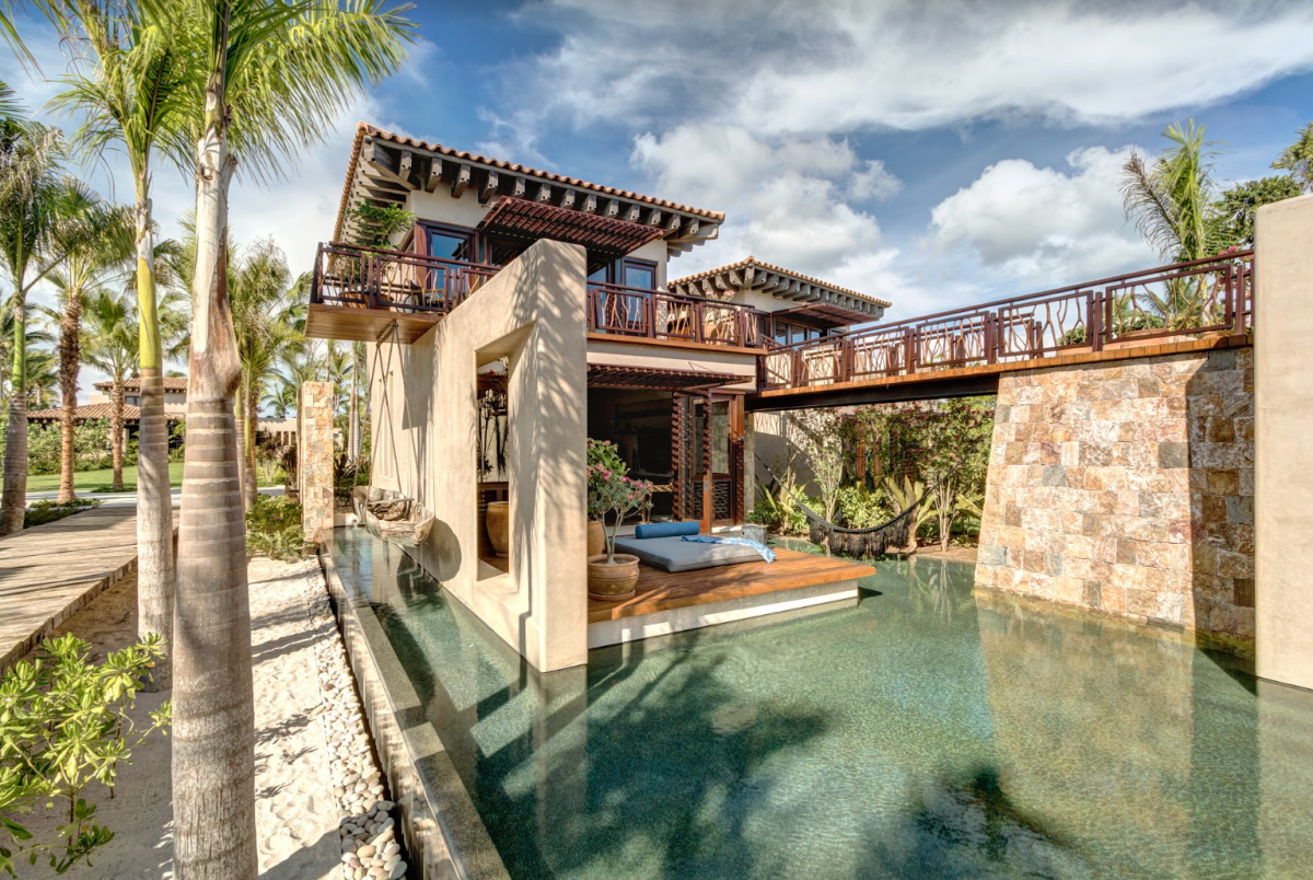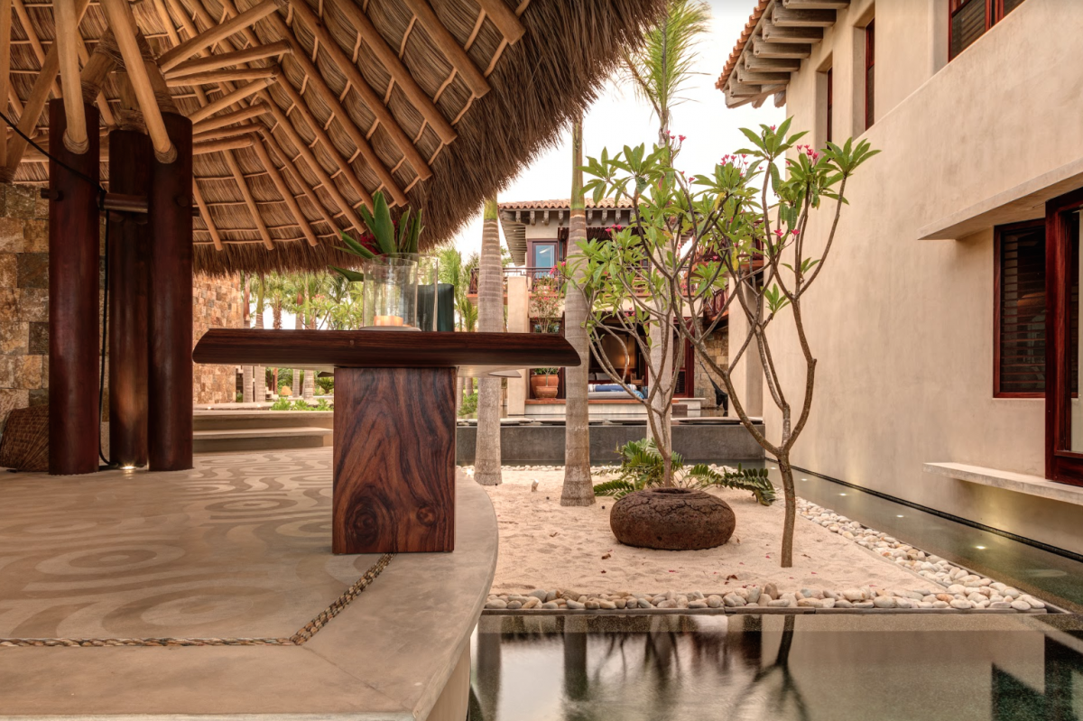 This magnificent villa with Golf Premier Membership to St. Regis and Punta Mita amenities, features a network of pathways through expansive reflecting pools and sand gardens, connecting each structure with the illusion of suspension over the Pacific.