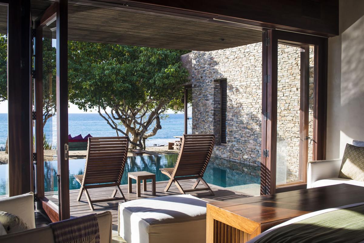 - Bedroom 1: King bed, en suite bathroom with shower and large stone bathtub, alfresco shower, sitting area, terrace