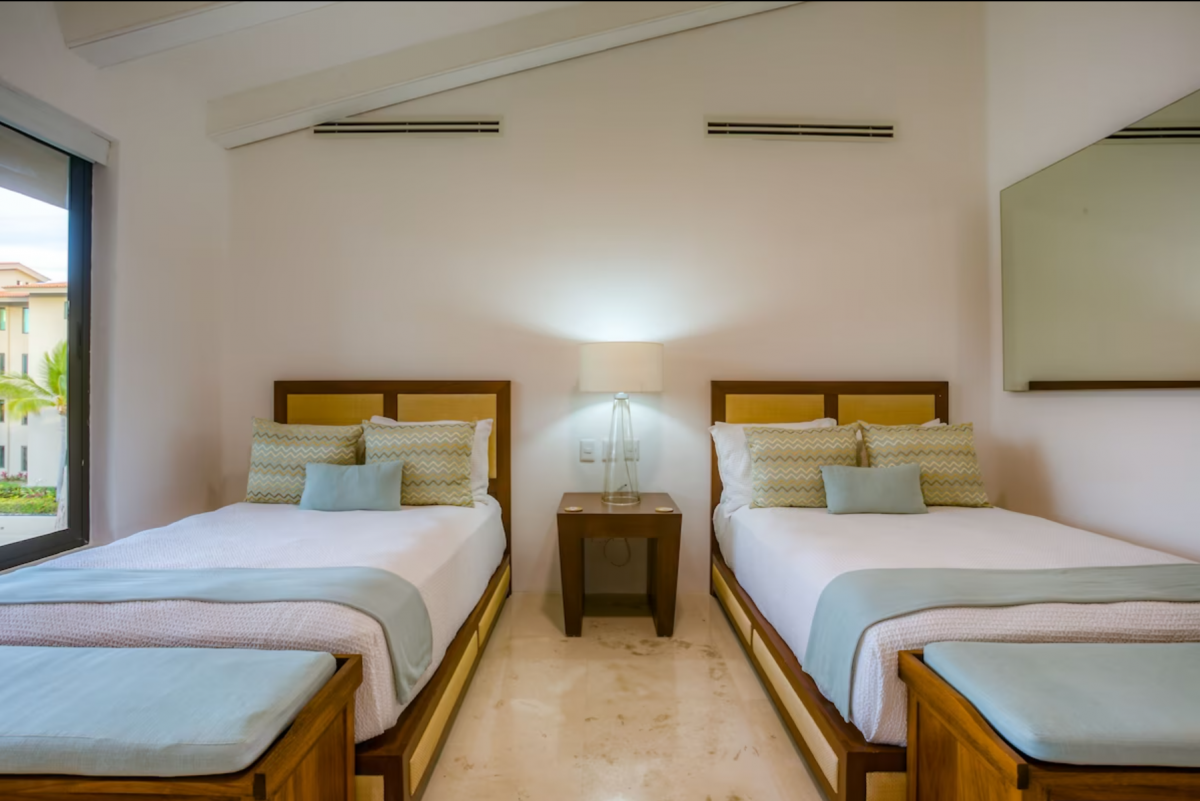 Bedroom 3: Bedroom 3 is equipped with two double beds, air conditioning, and an ensuite bathroom.