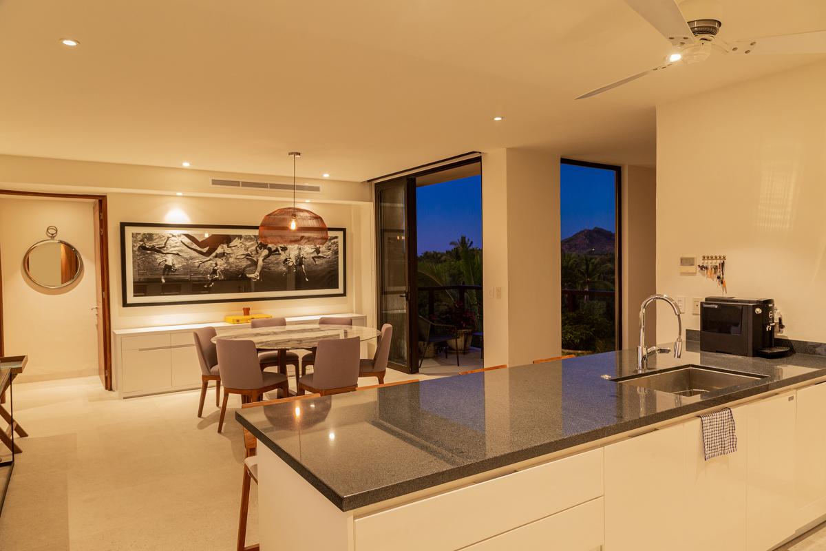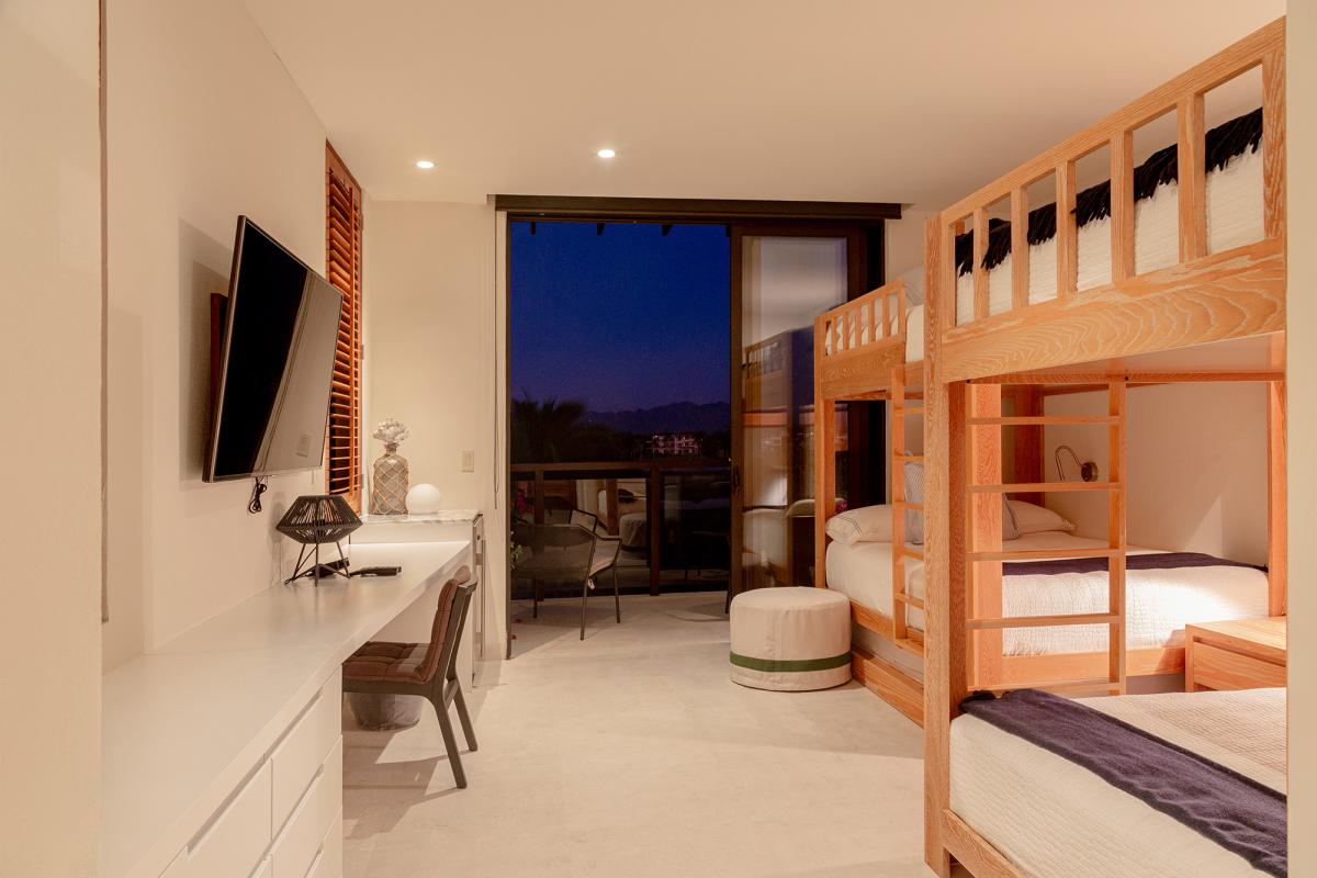 Condo El Morro is a gorgeous three-bedroom and three-bath Punta Mita vacation rental. This incredible Punta Mita condo is located in Las Marietas in Punta Mita. Two of the bedroom suites contain a king-sized bed and an ensuite bathroom, and the third bedroom suite includes two sets of bunk beds and an ensuite bathroom. In addition, Condo El Morro offers guests housekeeping services, cooking services, and concierge services. A golf cart, a terrace plunge pool, a fully equipped kitchen, a satellite TV, and welcome toiletries are amenities for guests to enjoy when staying at Condo El Morro. Guests also receive a Premier Golf Membership, including access to the Pacifico Beach Club and the Kupuri Beach Club. Guest may also access the PAcific & Bahia Golf Courses, Tennis Center, and Fitness Center with additional fees.