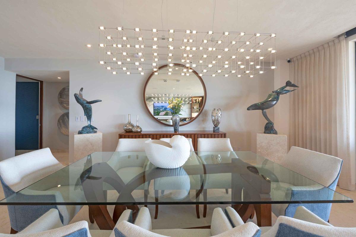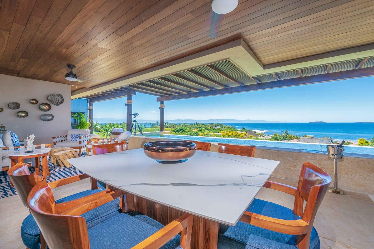 Casa Escrita is a stunning condominium rental in Punta Mita on the third floor at Tau. The furnishings at Casa Escrita blend sophistication and luxury for guests and provide unparalleled views of the Bay of Banderas and Las Marietas Islands. There are many features and amenities. The indoor amenities include an 85" TV with surround sound in the living room, high-speed WIFI, a fully equipped gourmet kitchen, and more. Outside, there is a private pool, a built-in BBQ, a dining and sitting area, a golf cart, and more for guests to enjoy. Casa Escrita is the perfect place to enjoy all Punta Mita resorts have to offer.