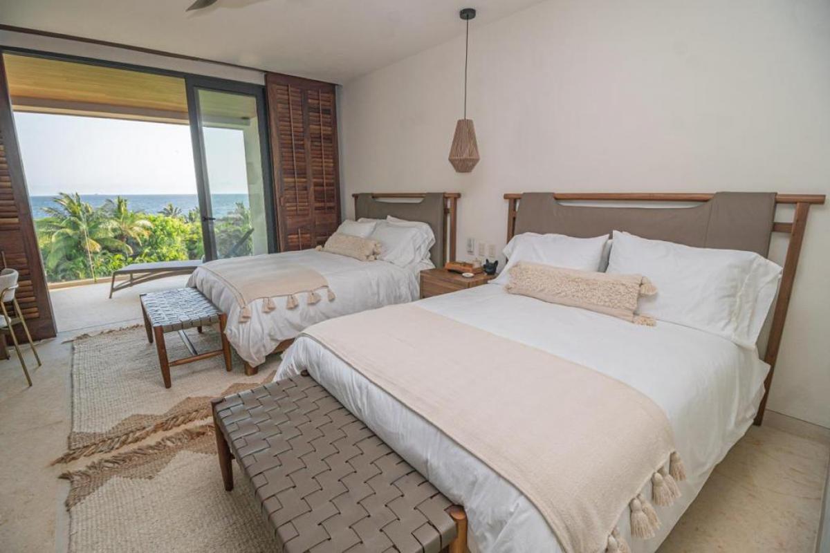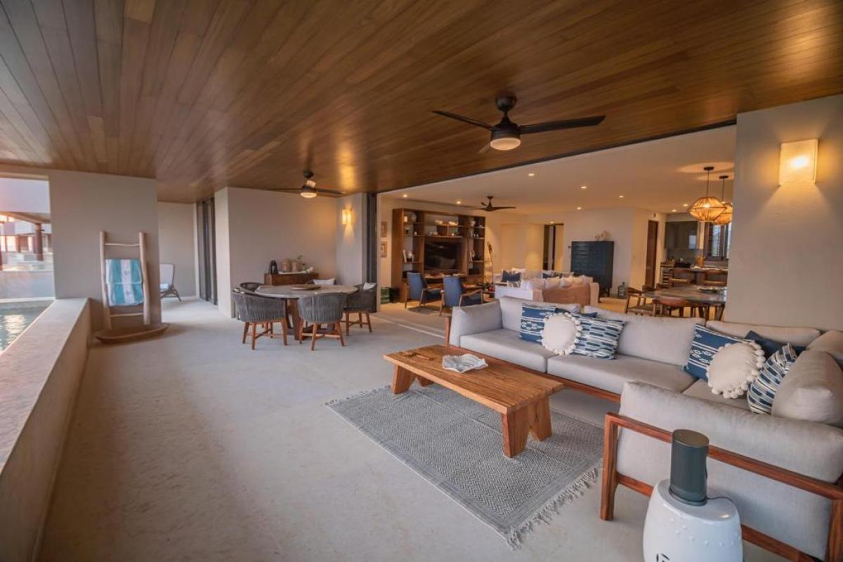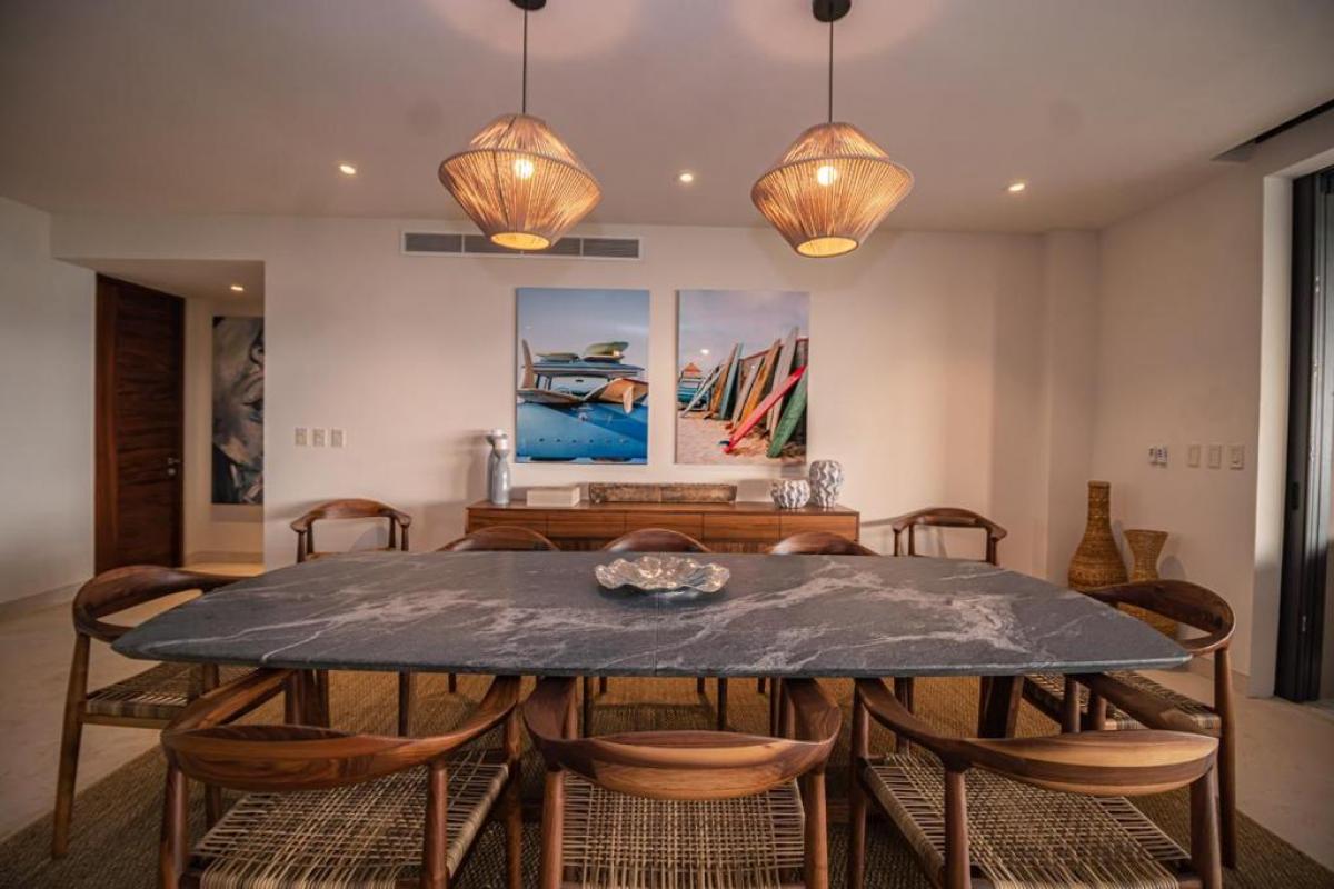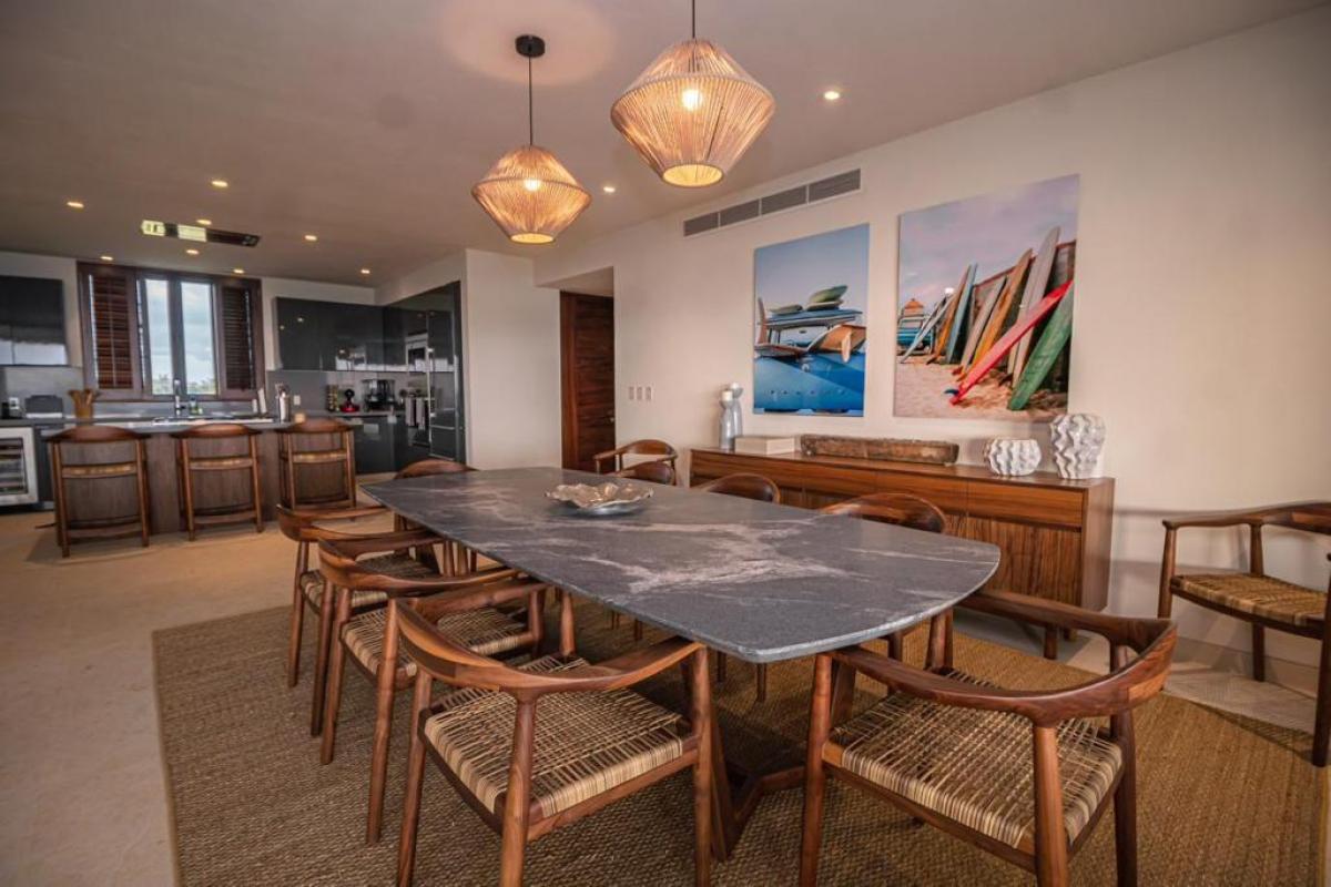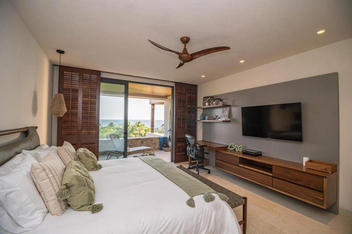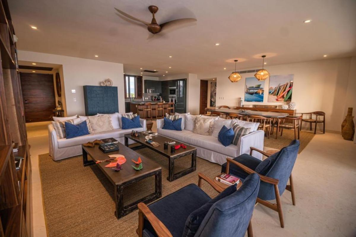 Condo Kumar, the Punta Mita resort Mexico, has a floor plan that spans 3,466 ft and it ranks among the most spacious options in the Punta Mita exclusive community. It ensures guests have a place to enjoy a luxury vacation home. There is a fully equipped kitchen, a large dining room table, and a TV lounge to enjoy time together indoors. Guests of Condo Kumar can also enjoy access to all the exclusive beach clubs and golf courses within the Punta Mita development.