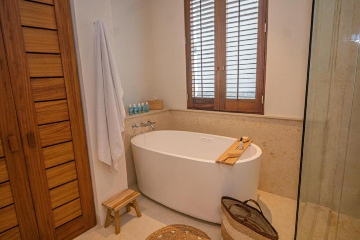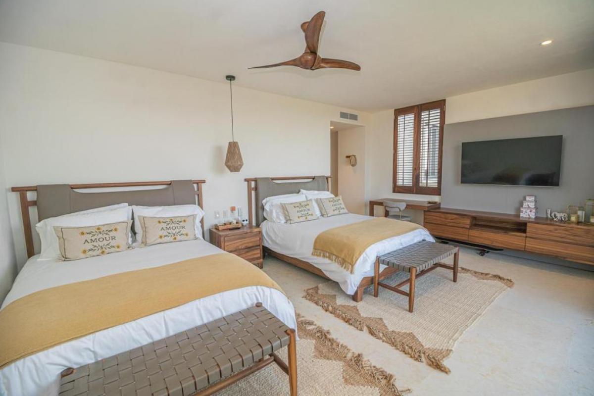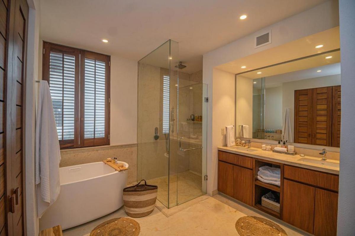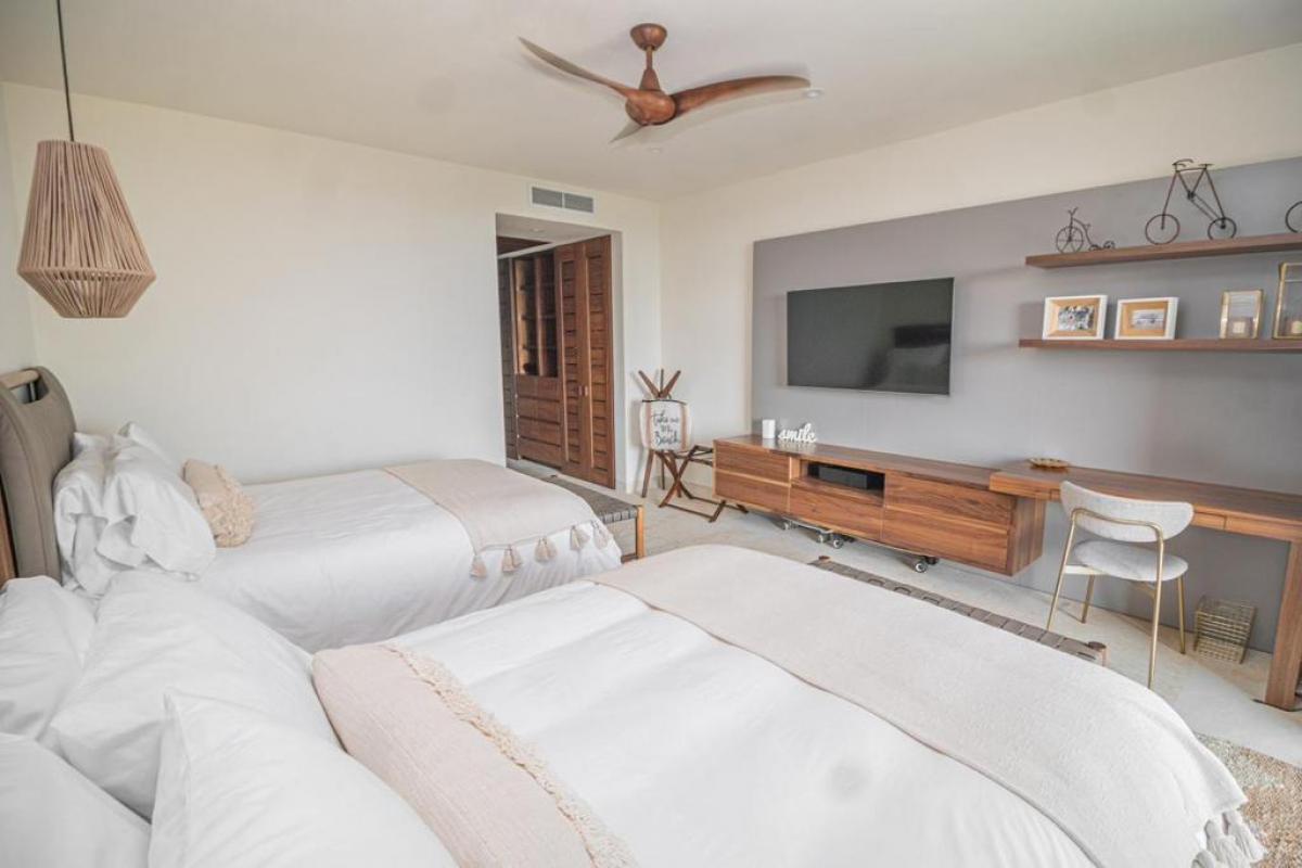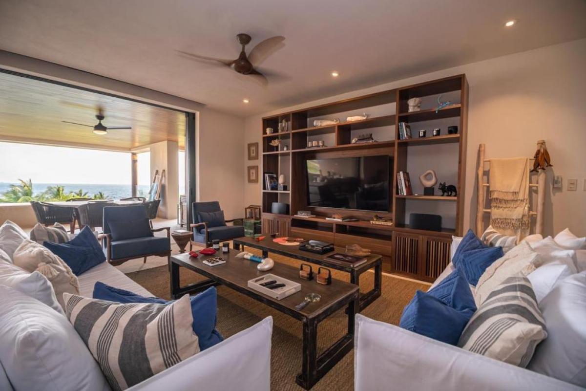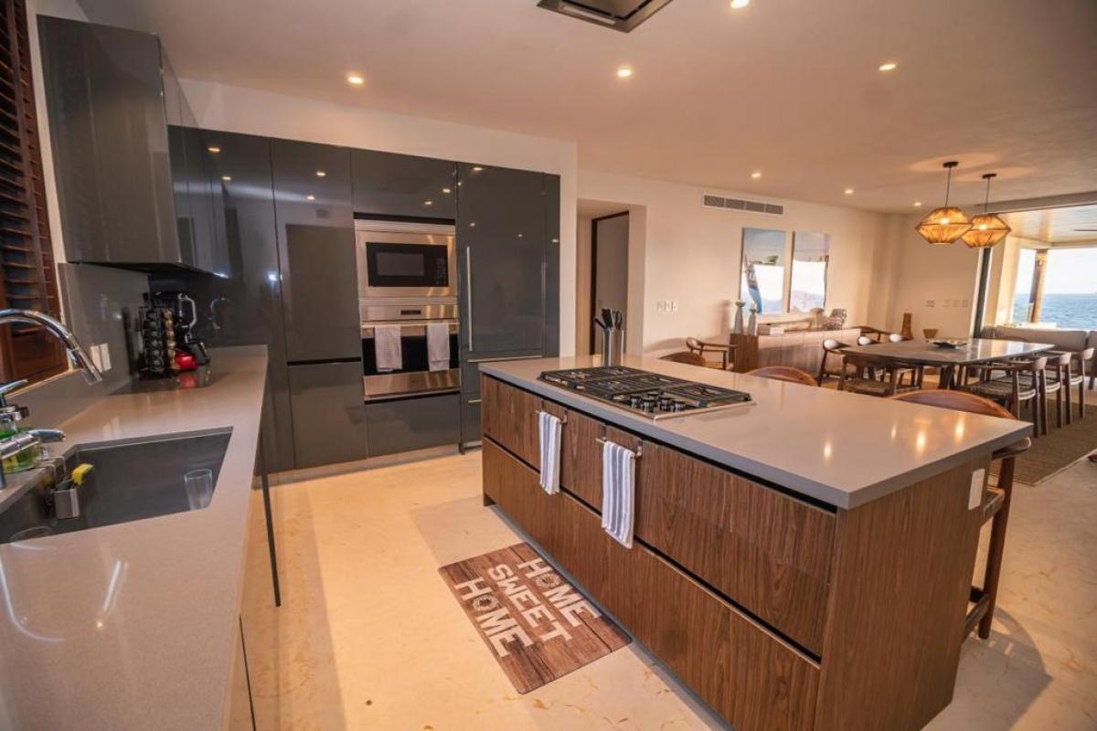 Condo Kumar, the Punta Mita resort Mexico, has a floor plan that spans 3,466 ft and it ranks among the most spacious options in the Punta Mita exclusive community. It ensures guests have a place to enjoy a luxury vacation home. There is a fully equipped kitchen, a large dining room table, and a TV lounge to enjoy time together indoors. Guests of Condo Kumar can also enjoy access to all the exclusive beach clubs and golf courses within the Punta Mita development.