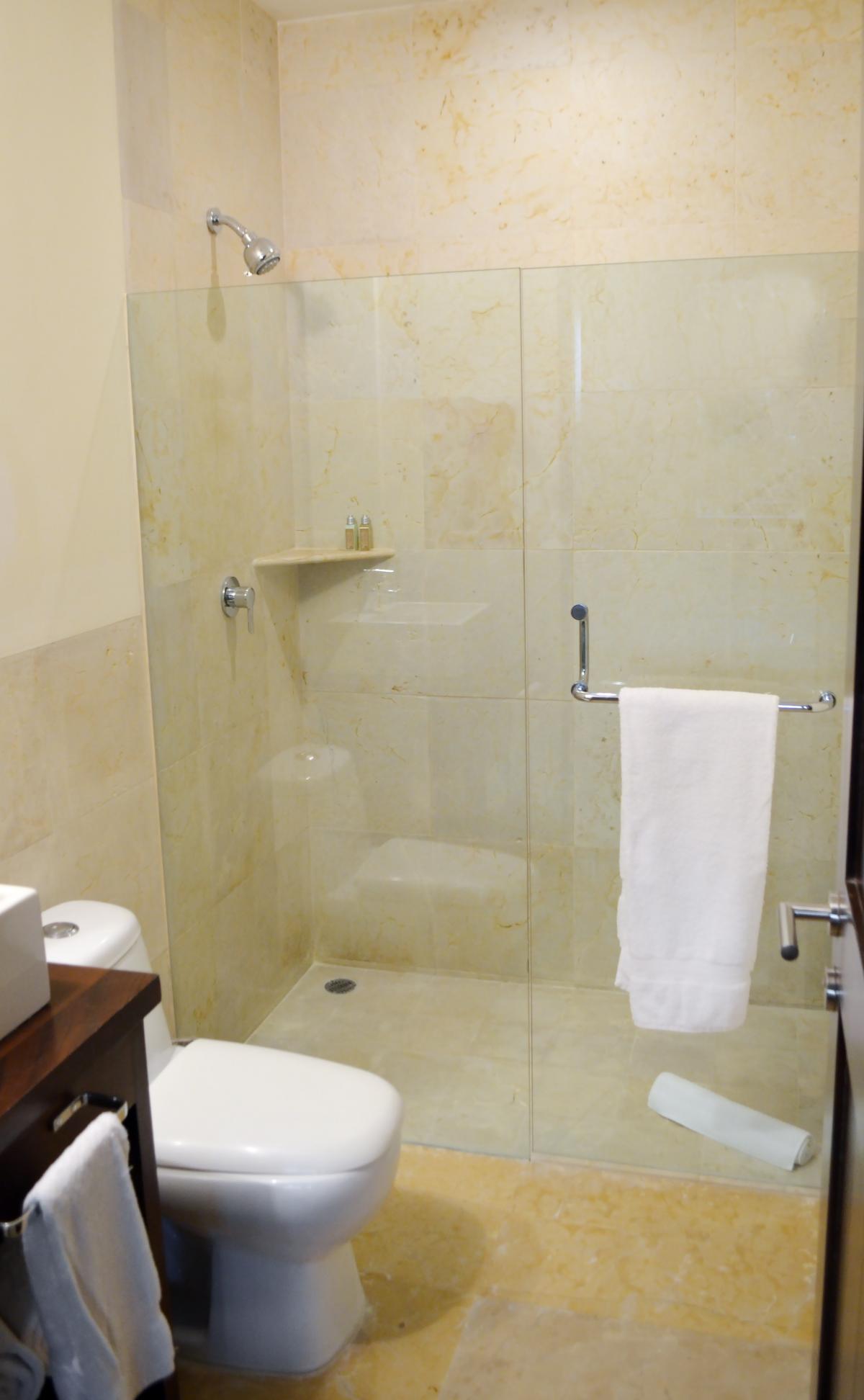 - Bedroom 2: King bed, en suite bathroom with shower