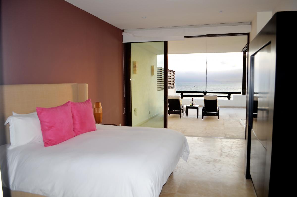 Condo Pacifico is a Punta Mita villa built with a distinctive Los Veneros style with the fusion of generous spaces and a calming interior esthetic—designed for contemporary oceanfront living. Spacious, open floor plans combine functionality with style. Sliding glass doors fully retract to seamlessly integrate interiors with the outdoor living spaces of the large private balconies or terraces. The architecture emphasizes the water views and abundant natural light of Condo Pacifico, while the interiors feature the sensuous textures and dramatic shapes found in the surrounding natural elements.