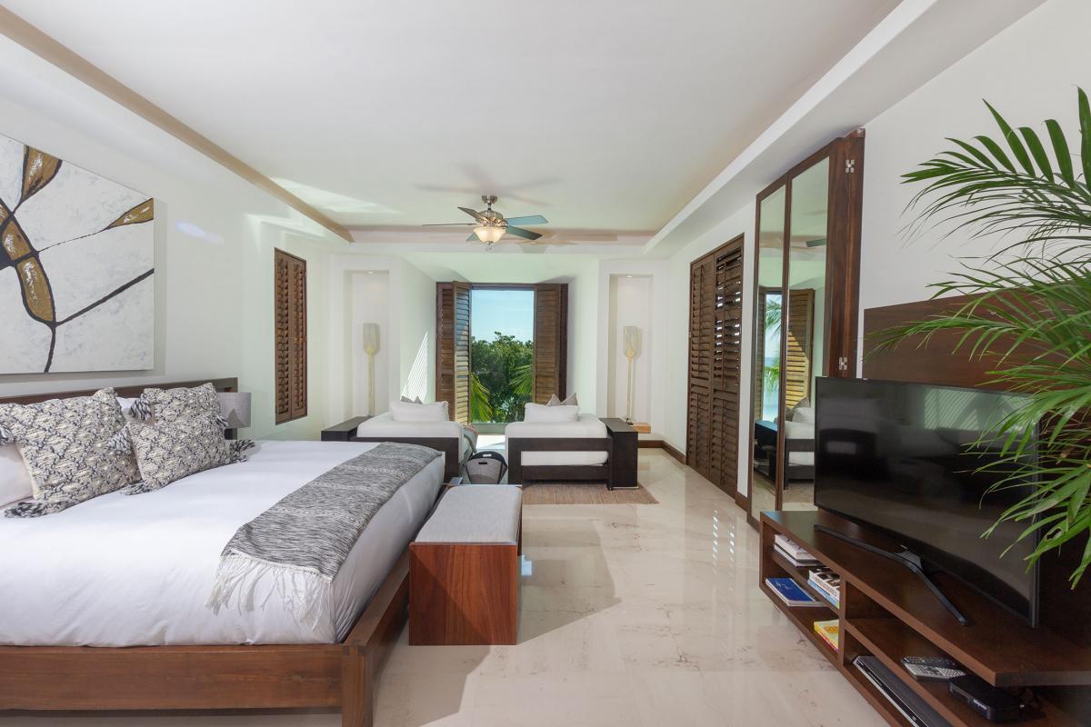 Primary Bedroom 1: This bedroom has a king-sized bed, a jacuzzi, ceiling fan, air-conditioning, flat screen, a DVD player, a safe, and an ensuite bathroom.