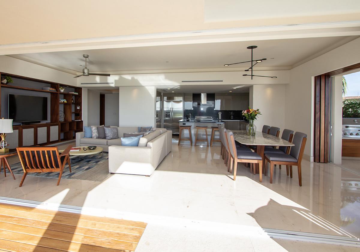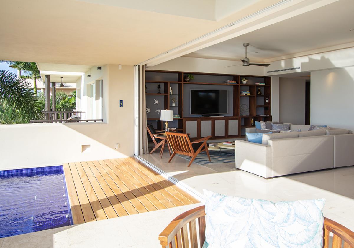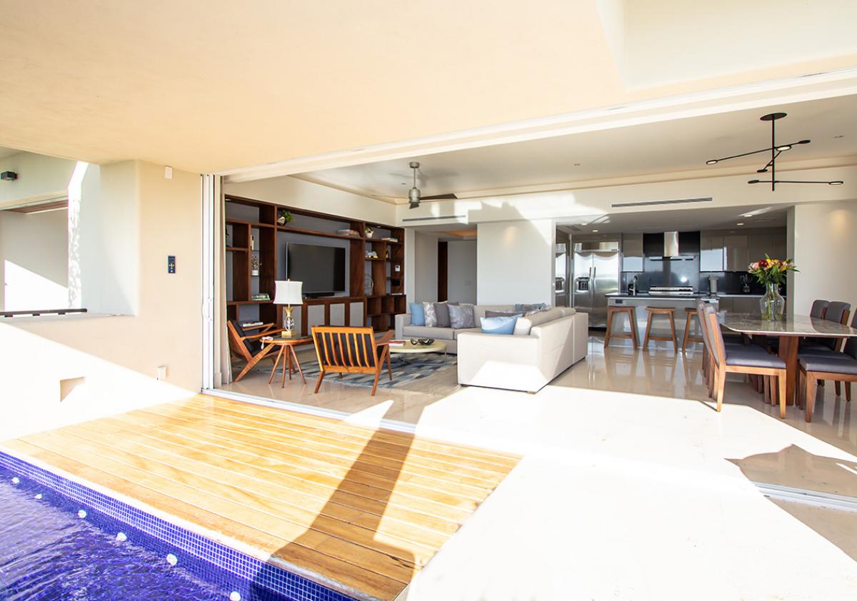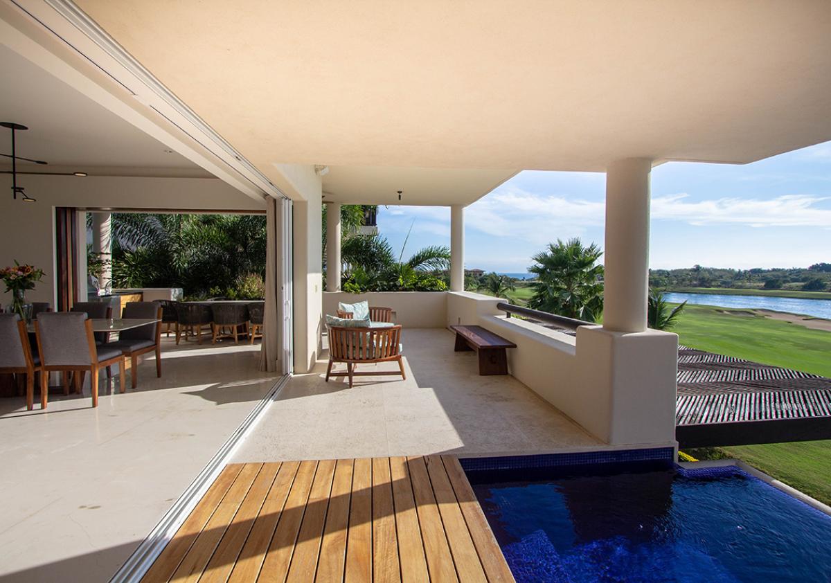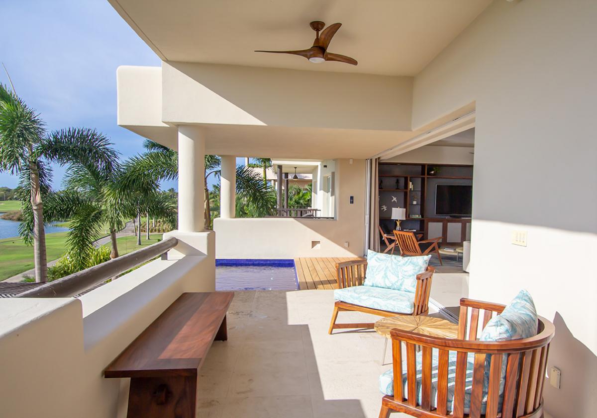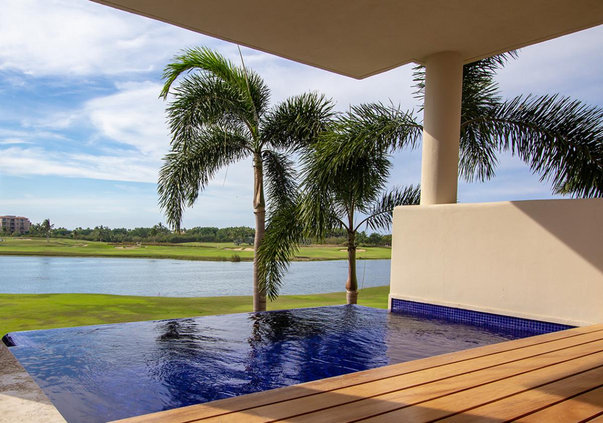 El Encanto Condo 602 is in the El Encanto residential community that is located in Punta Mita. This condo is on the first level and gives amazing views of the fairway of the golf course and colorful sunsets to the west. El Encanto Condo 602 has a large terrace that wraps around three sides of the condo, giving guests the opportunity to enjoy the outdoors from the comfort of their condo. El Encanto Condo 602 is a luxurious condo sitting in front of the 12th hole of the Bahia Golf Course. The outside provides a private heated infinity-edge soaking pool, the perfect place to relax.