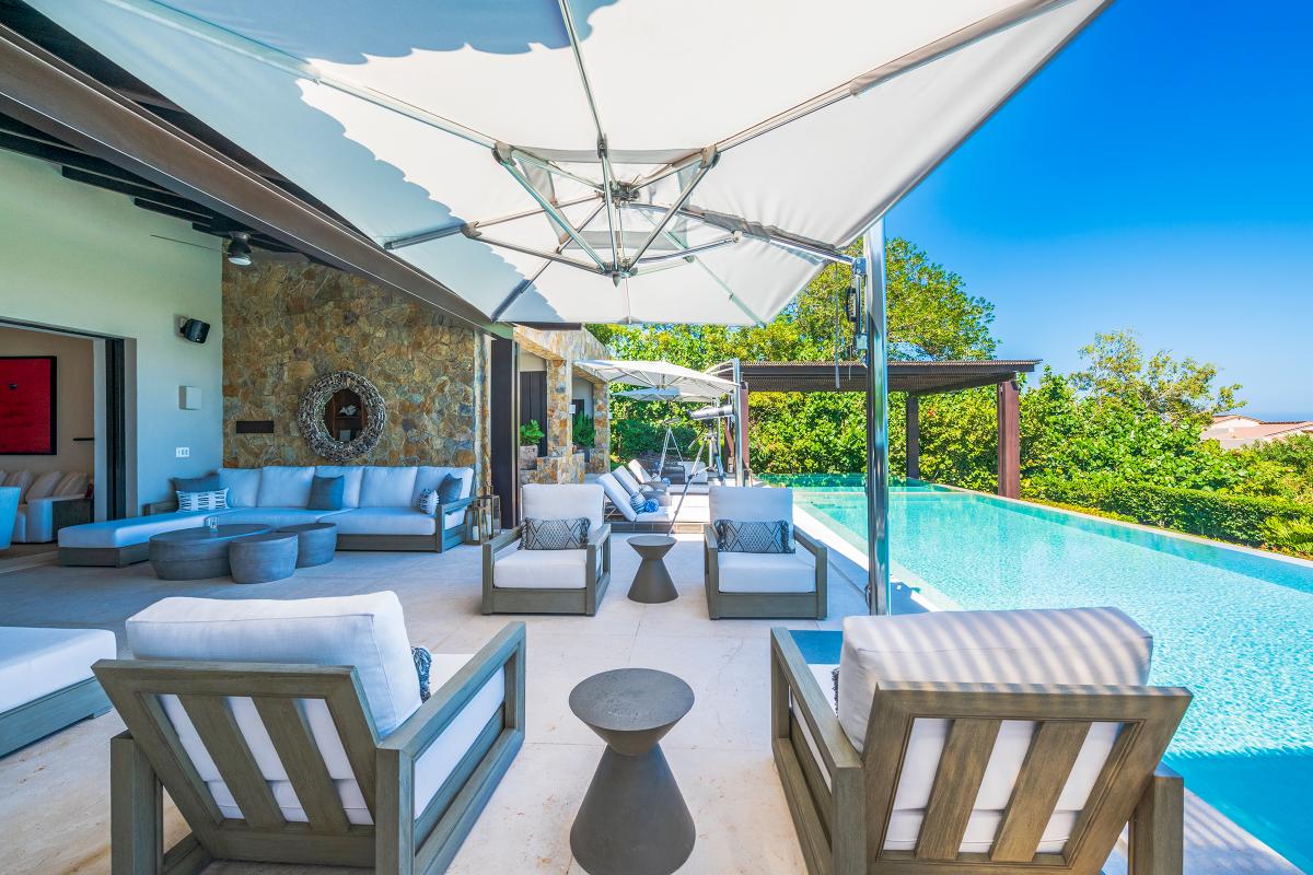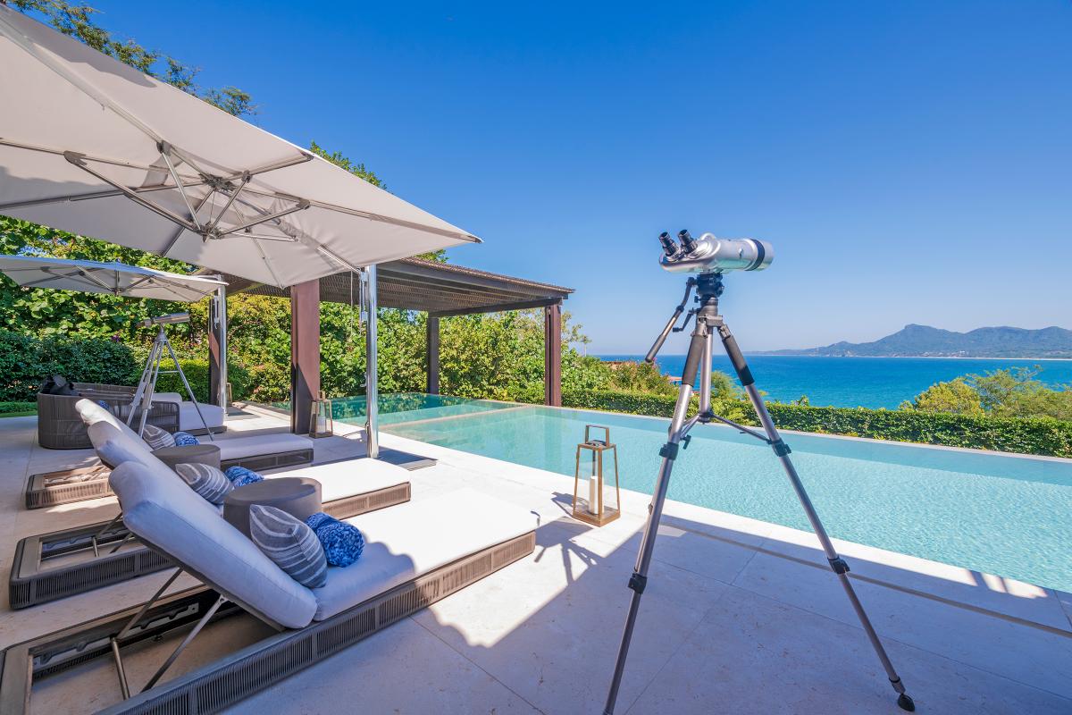 Estate Polaris provides guests with other excellent amenities both indoors and outdoors. Guests can access an office, gourmet kitchen, television, air conditioning, and internet. Guests can also relax outside on one of the terraces, at the infinity pool, on the golf cart, or around the outdoor lunch table or sitting area. Guests staying at Estate Polaris are cared for by the concierge, house manager, and daily maid.
