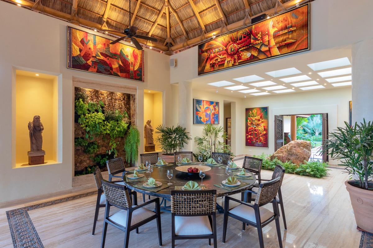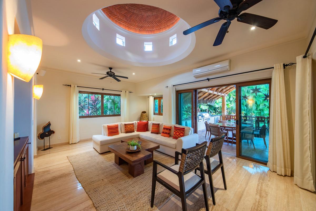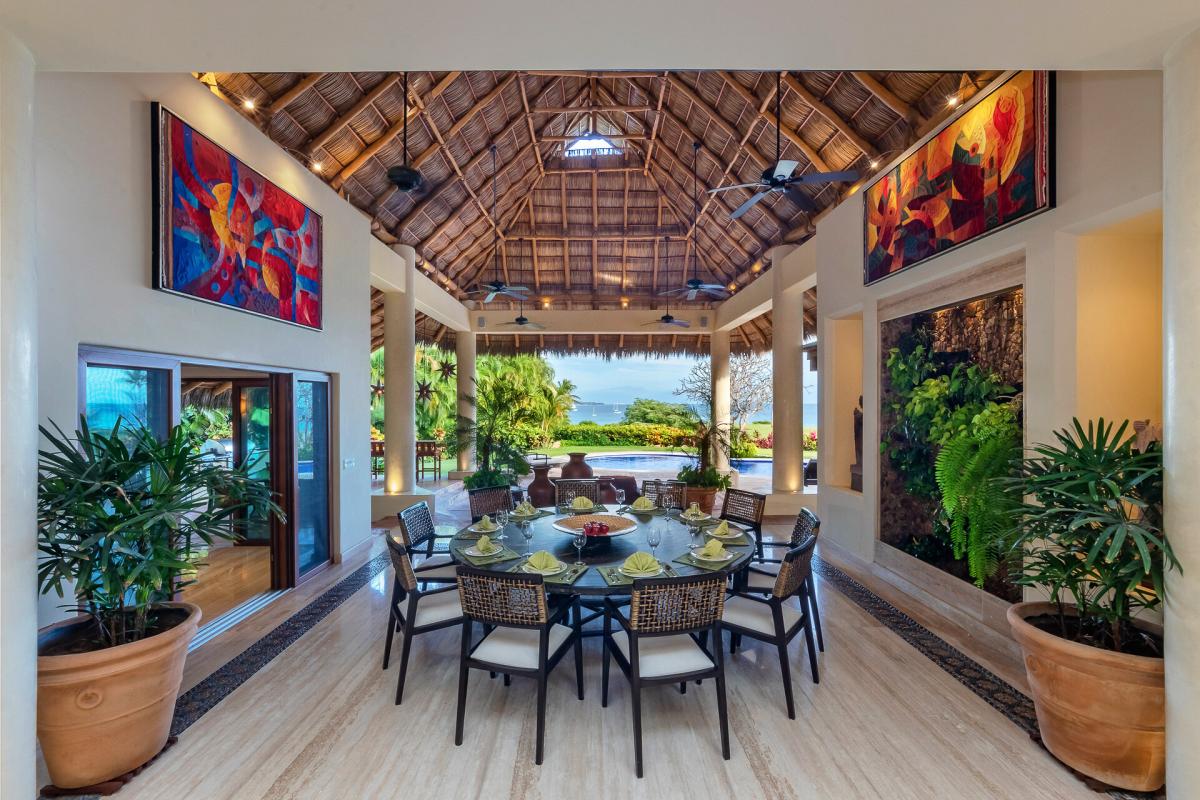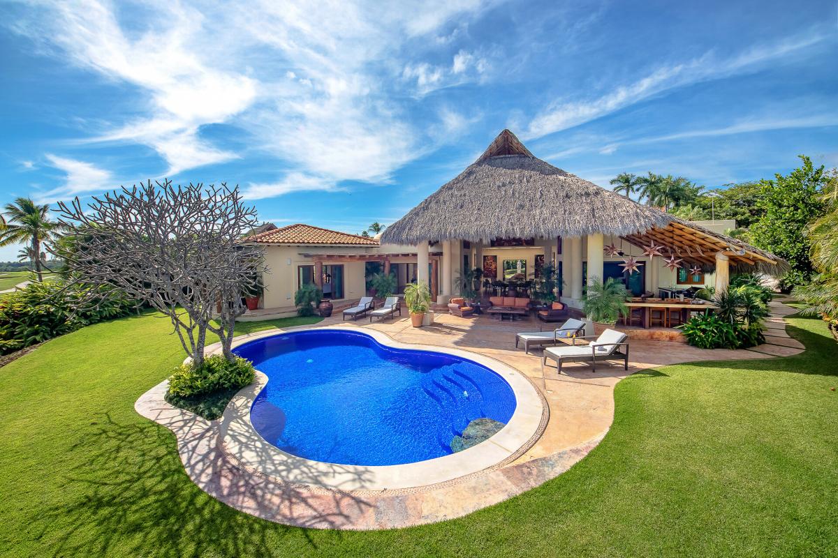 Unplugged and an escape to simplicity wrapped in luxury, is the best way to refer to this truly enchanting villa. Beautifully and securely situated in the Mexican Rivera known as the Punta Mita resort, La Villa Bella is located on the Jack Nicklaus signature golf course of Pacifico, adjacent to the Four Seasons, overlooking the expansive Bahia de Banderas and Pacific Ocean. Tastefully grand, La Villa Bella will indulge you with magnificent views of the ocean and the Marieta Islands, and the perfect fusion of tropical and traditional Mexican architecture, in an exquisite setting of lush natural beauty. All this comes with the convenience of air conditioned suites, wireless internet, and high end stereo compatible with your CDs, iPod, and iPhone. Life is good at La Villa Bella. Relax in the ultra calm and soothing indoor and outdoor oversized living spaces throughout this magnificent villa. Enjoy the 4 exquisitely designed suites, 5 bathrooms, a relaxing indoor/outdoor living room with adjoining wet bar, family room, dining room, breakfast room, separate palapa for dining, gourmet kitchen, and a heated pool overlooking the azul green Pacific and distant Puerto Vallarta skyline and Sierra Madre mountains. The highest level of service and amenities are the final ingredients to this wonderful retreat. The chef will cater to your every culinary desire and the concierge will accommodate your every need to make sure your visit is full of leisure, comfort, and adventure. There are a variety of restaurants, services, and activities such as villa massages, whale watching, surfing, kayaking, sailing, fishing, horseback riding, and jungle adventures that will introduce you to the lifestyle and natural wonders of this tropical paradise. It is easy to do it all and experience the local color and flavor of nearby authentic Mexican villages or simply improve your skills at the art of doing nothing. Whichever you choose, you will undoubtedly create memories for a lifetime at La Villa Bella. This Punta Mita villa is great for families!