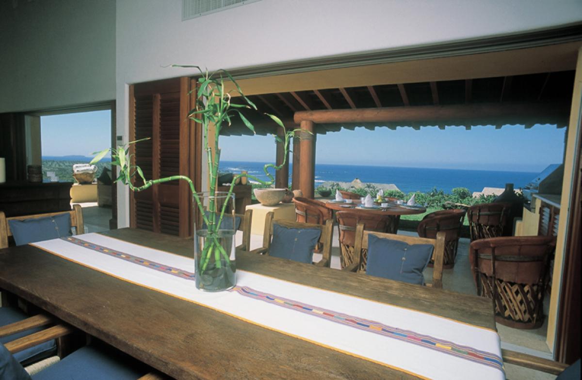 You will feel at home in this fabulous Ocean View Villa, located oceanfront at the Four Seasons in the Punta Mita resort, with breathtaking views of the Pacific Ocean. This unique Ocean View Villa rental is decorated and furnished with a Mexican contemporary style. Like all traditional, antique Mexican homes, the patio entrance surrounds a marble stone fountain; in that same tradition, the patio grants access to all bedrooms and to the common guest living room and terrace areas. The private and spacious terraces at Ocean View Villa feature an infinity pool and a jacuzzi overlooking the Pacific Ocean, and an outside dining and sitting area with a grill where guests can enjoy the marvelous views and spellbinding sunsets. Two of the bedrooms, as well as all the common guest areas, have awesome oceanviews. The kitchen in this Punta Mita villa is fully equipped with top of the line cooking facilities. Meals may be enjoyed in the dining room, comfortable enough to sit eight people. A family room adds to the sensation of total relaxation due to its exquisite decoration, comfortable furniture, CD and DVD players, and plasma screen TV's in all its five rooms. The spacious bathrooms are state of the art, with rain shower heads, independent soak in bathtubs, and marble double basins for comfort and luxury in an ambiance of privacy and Four Seasons pampering. The villa has 3 bedrooms with king size beds and 2 with 2 double beds.