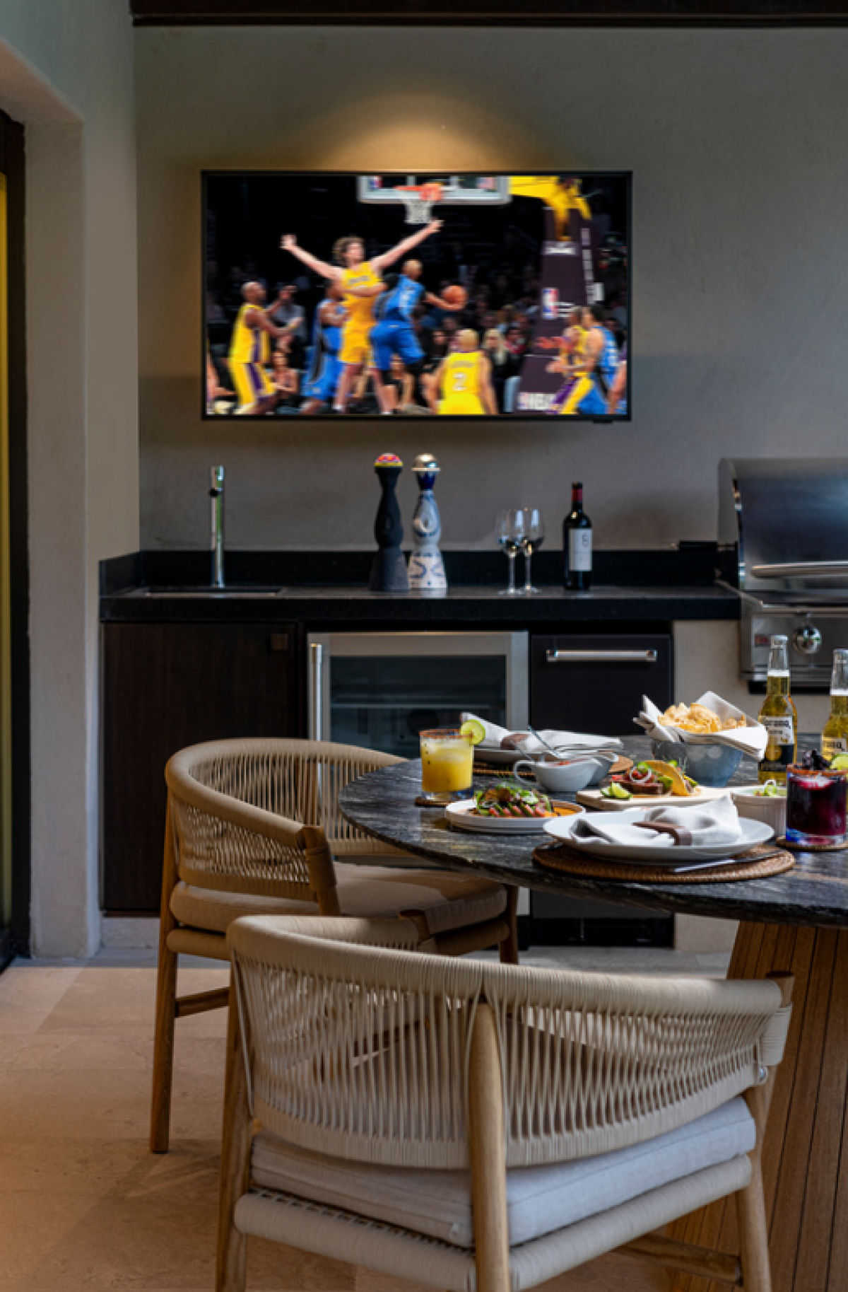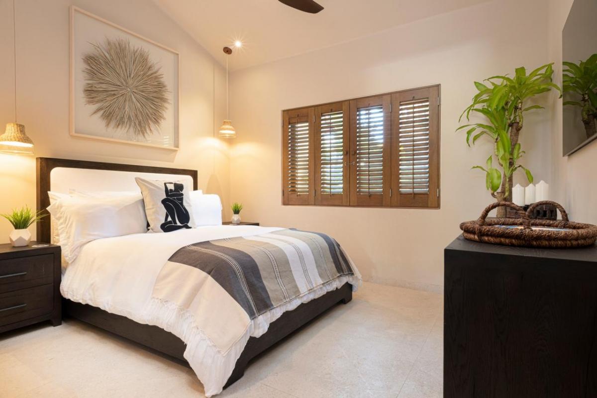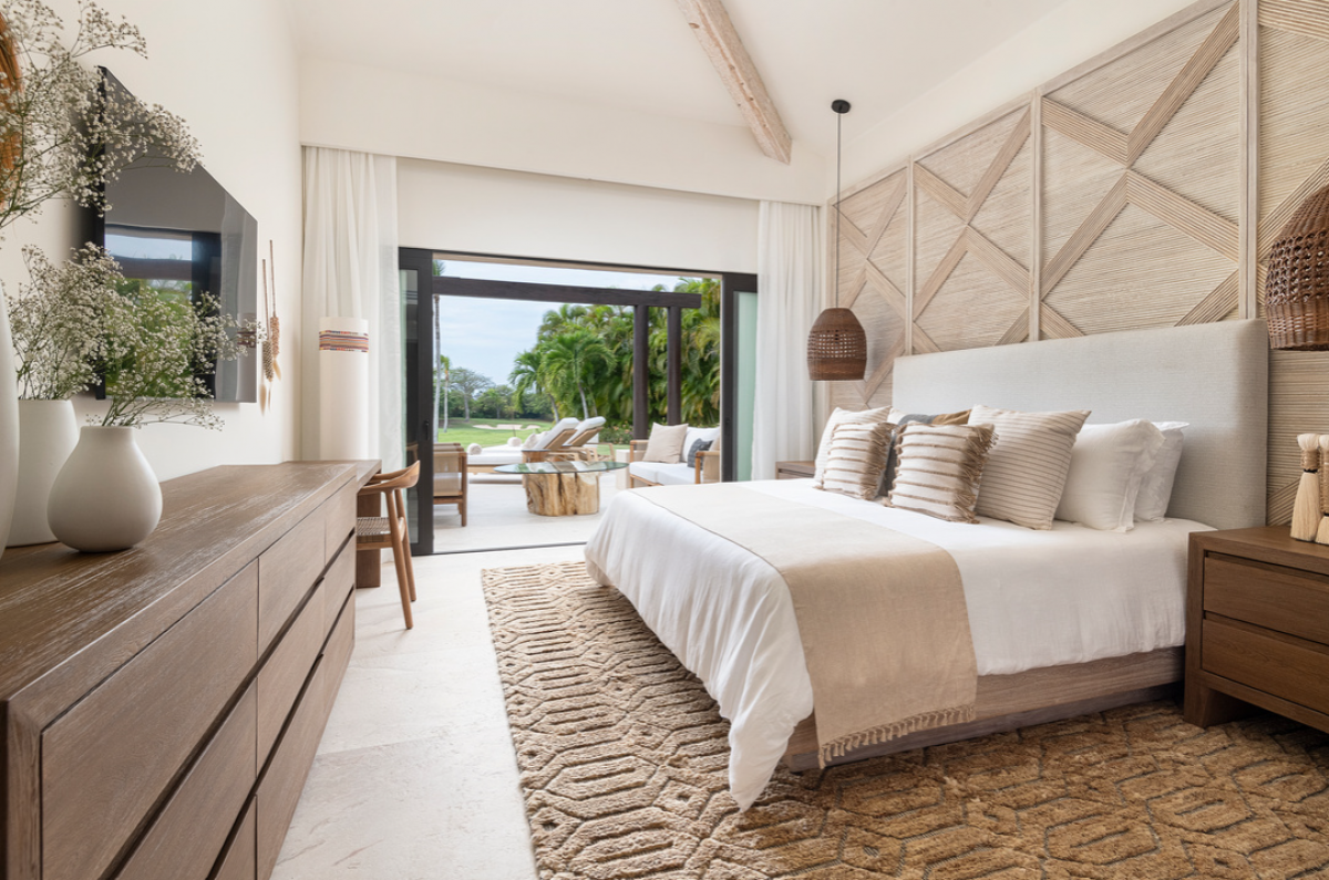 Bedroom 4: King bed, TV, a private patio, ensuite bathroom with a rain shower, a marble outdoor soaking tub for two, and a dual vanity.