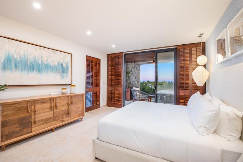 Primary Bedroom: King bed, balcony with ocean view, ensuite bathroom & shower