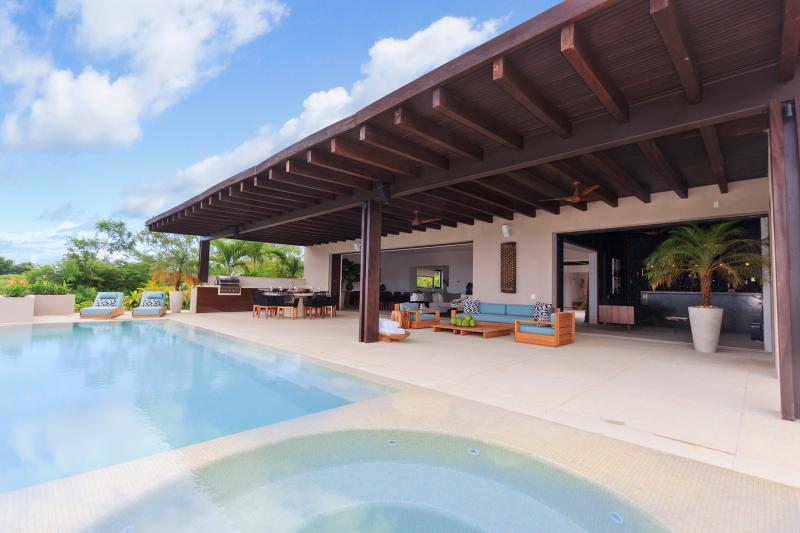 Guests at Tres Amores are welcome at the pools, spas, restaurants and tennis courts at four local resorts as well as golfing at the Pacifico and Bahia. Tres Amores is one of he few villas on the peninsula with access to all the beach clubs and golf courses. If guests prefer to stay private, the villa offers a salt-water infinity pool, hot tub, gas barbecue, outdoor dinning, and shaded terrace.