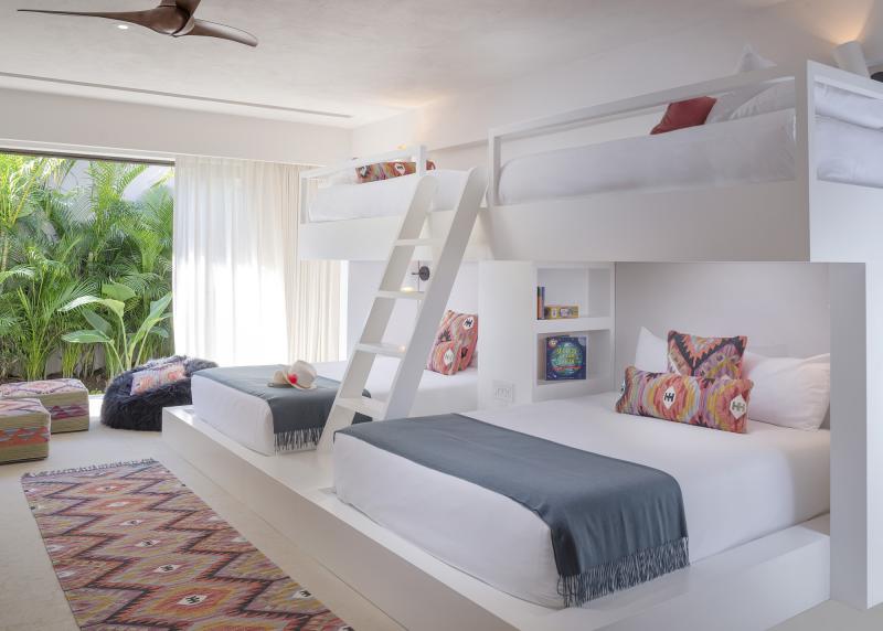 Bedroom 4: Bedroom 4 is the perfect bedroom for kids, teens and young adults, with two Queen-size beds and two Twin bunkbeds, in-suite bathroom with stand-alone shower, dual vanity, bathtub, flat-screen television, air conditioning, and ceiling fan.