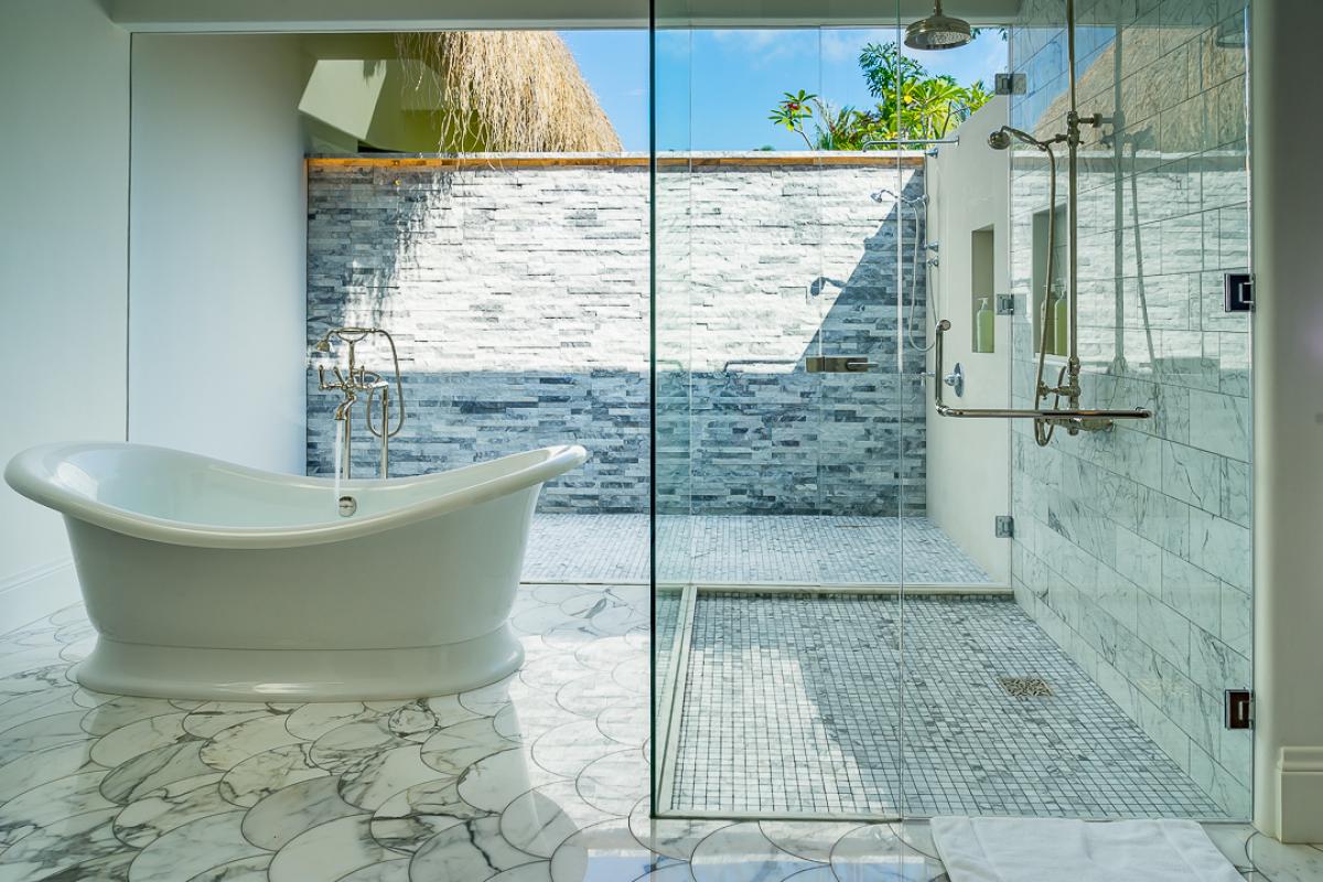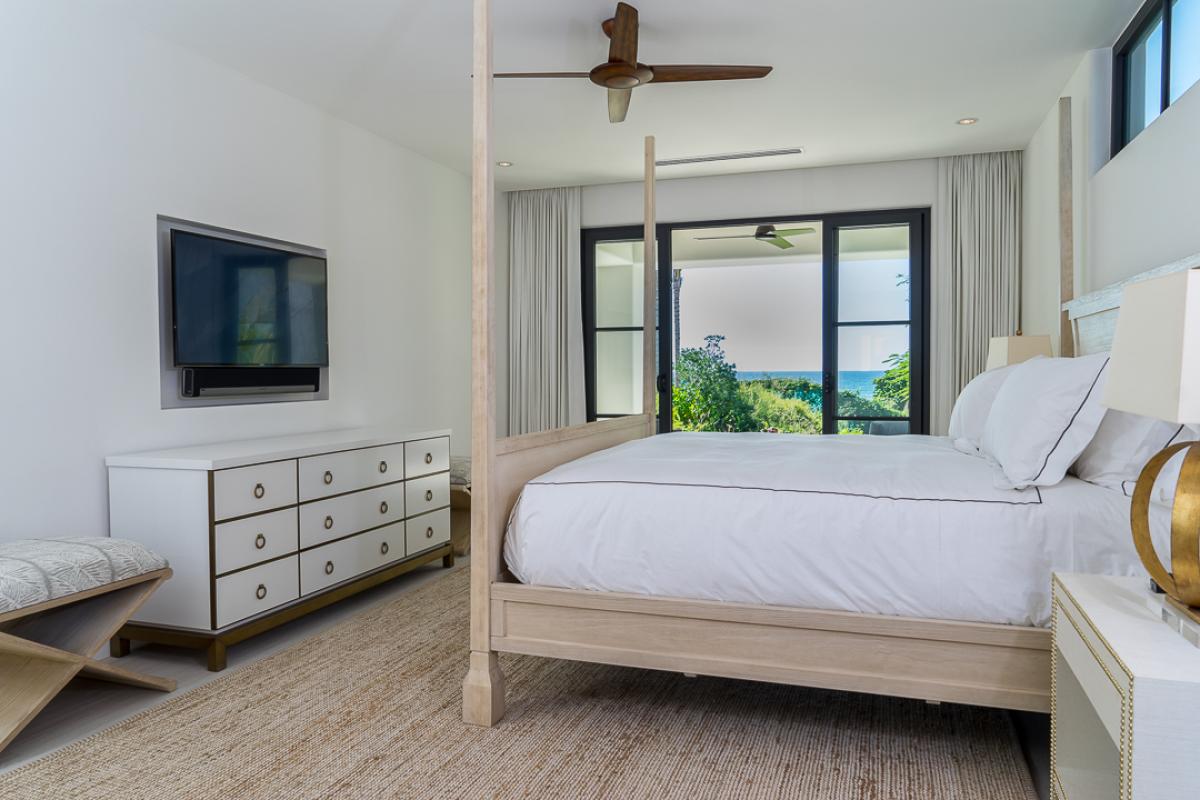 - Bedroom 1: Primary with king bed, Pacific view, Italian linens, en suite bathroom with shower, outdoor shower, safe, HD TV, Control 4 sound system, terrace