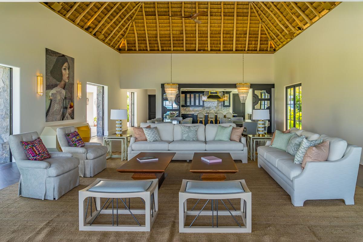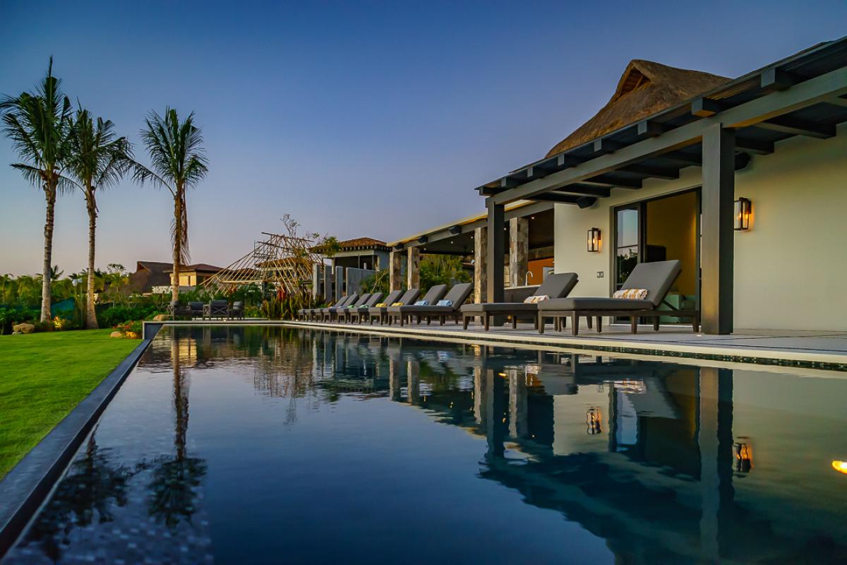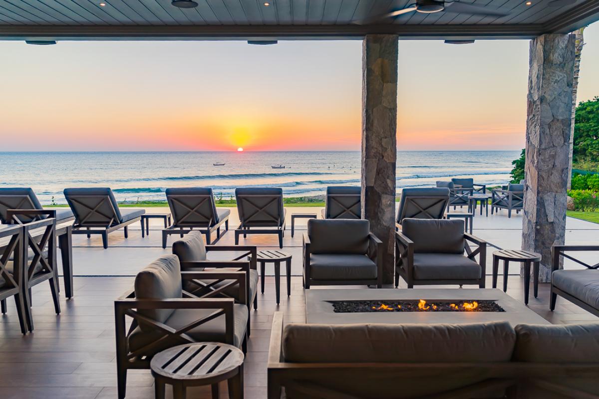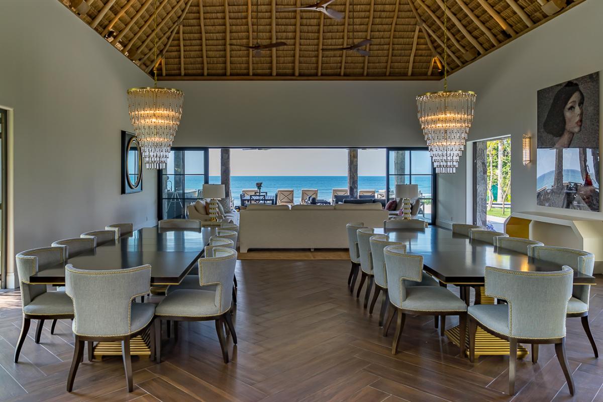 This Punta Mita luxury villa overlooks the Pacific Ocean hosting sunset and island views along with the best surf view in all of the Punta Mita development. Vatulé offers 2 living and dining rooms, a shaded outdoor living/dining area next to the pool with a wet bar and grill, an office, and 2 rooftop terraces, all with Pacific views. Vatulé boasts a 72 foot infinity pool and a jacuzzi that seats 14 people. It has an expansive 50 yard playing field (for soccer, badminton, corn hole, bocci ball, etc.) which overlooks the 17th fairway.