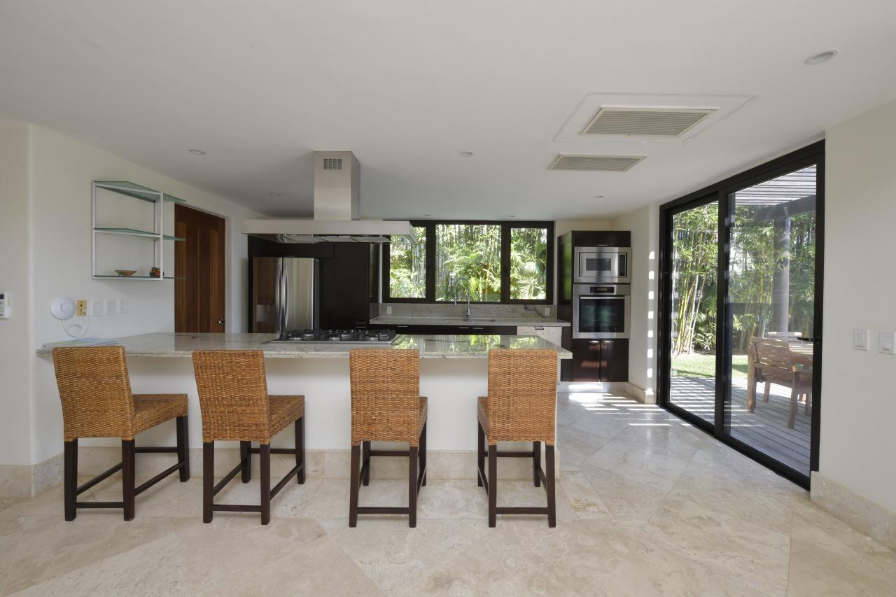 Villa Jade comfortably sleeps 10 guests who can all enjoy private pool access and direct ocean views. A private hot tub is positioned on the upstairs lanai. Villa Jade is equipped with plasma TVs and full satellite service for guest convenience. The entire home features a full home stereo system making use of zones throughout the indoor and outdoor space. Enjoy both the music and movie libraries from any zone. Villa Jade’s stylish commercial kitchen features Scavolini cabinets, Miele stove and dishwasher, Viking refrigerator, and granite counters to make any chef hop for joy. Designer pieces decorate the rest of the home to ensure your comfort.