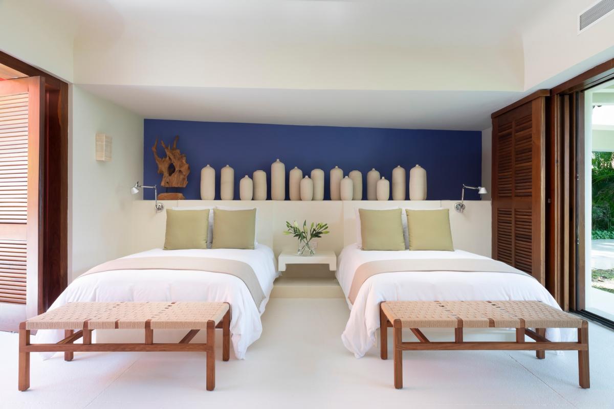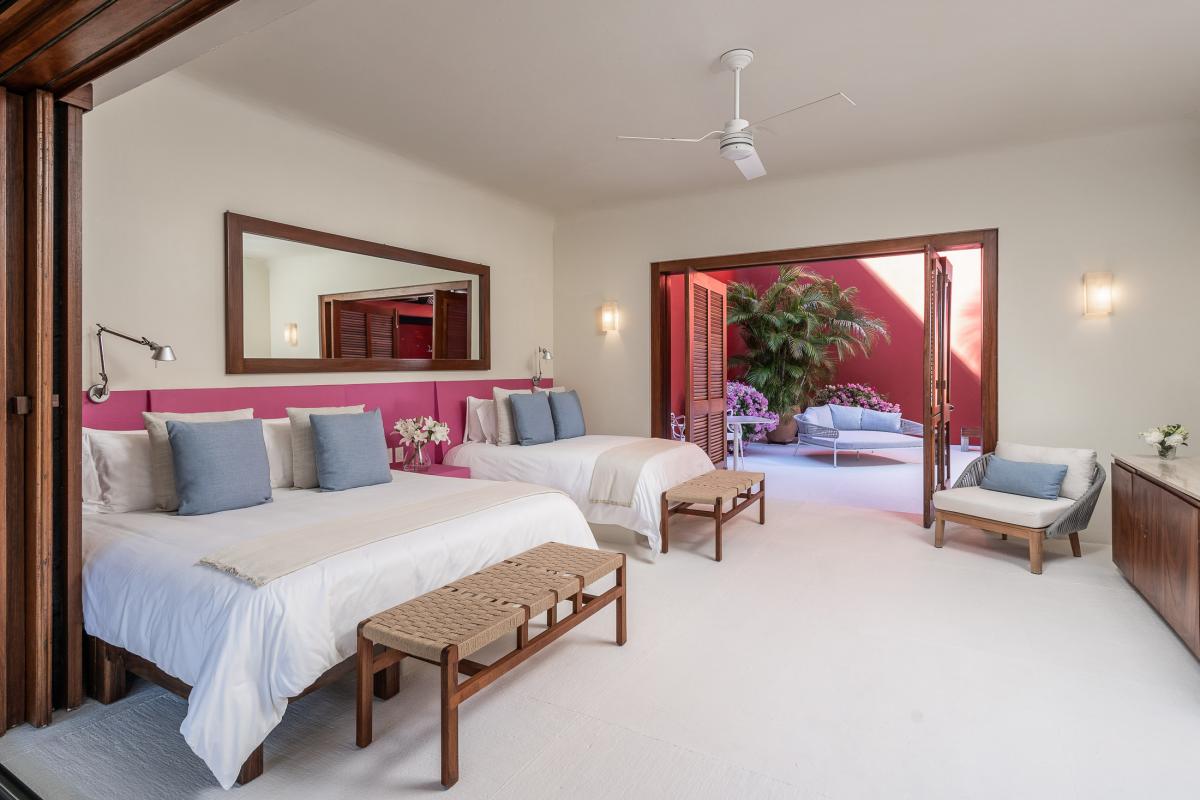 Cabanas Rooms A and B: Located at the villa's main entrance, the charming cabanas offer the option to increase your occupancy to 7 bedrooms. Two rooms with two twin-size beds or optional set up to One King Size Bed. The suite features an in-room minibar, Nespresso® Coffee maker, television and Apple TV, and private baths with shower, vanity makeup/shaving mirror, Hairdryer, Soft terry cloth bathrobes, L’Occitane signature toiletries, and more.