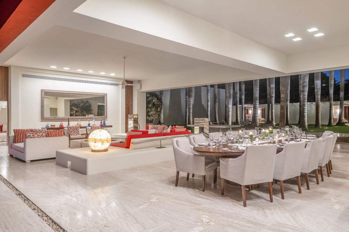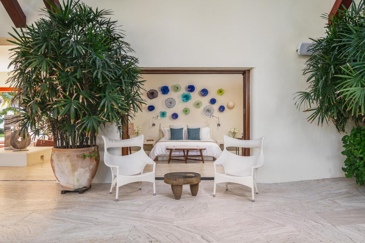 Villa Pacifica is fully staffed with a house manager and an on site housekeeper, chef and butler for your Punta Mita vacation. From the moment you arrive at Villa Pacifica, any stresses that you may have brought with you will instantly melt away. Friendly, attentive villa staff will greet you with freshly made margaritas and whisk away your luggage to your room. Guests enter the compound through a rear garden featuring a half moon pond, palm trees and an expansive grass area. From this rear garden you walk through an entrance and down a beautiful travertine walkway. On the right is a huge royal palm courtyard that looks through the main living area to the ocean. You will be guided directly into Villa Pacifica's great room. This gorgeous open living and entertaining area has multiple seating and dining areas and overlooks the pool and ocean. This vista will tell you that your Punta Mita vacation has officially begun!