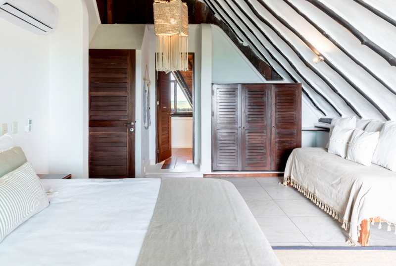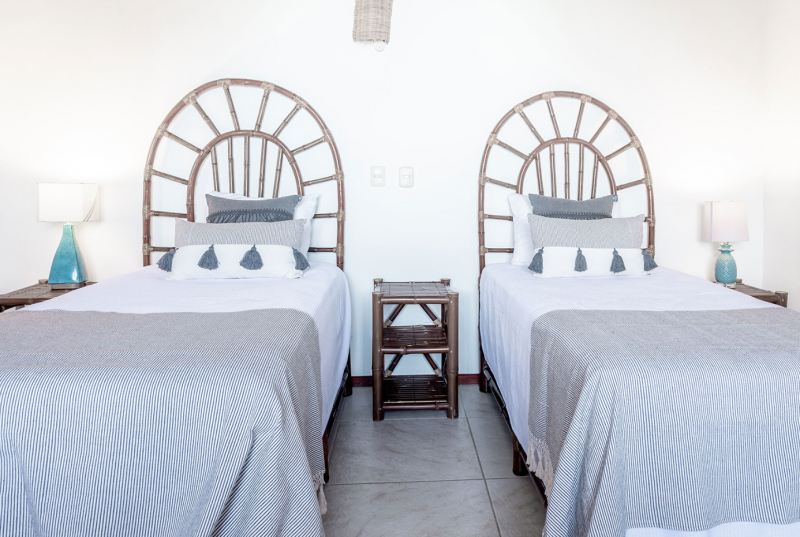 Bedroom 4 - Mistral Palapa principal (Second Floor): 1 Single bedKing size bedBlackout shadesCeiling fanEnsuite bathroom with showerHairdryerHammockIron/ironing boardOcean views with private balconySafety boxToiletriesWifi accessWindow screen