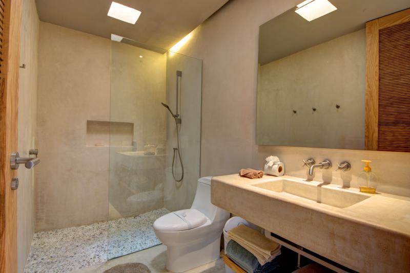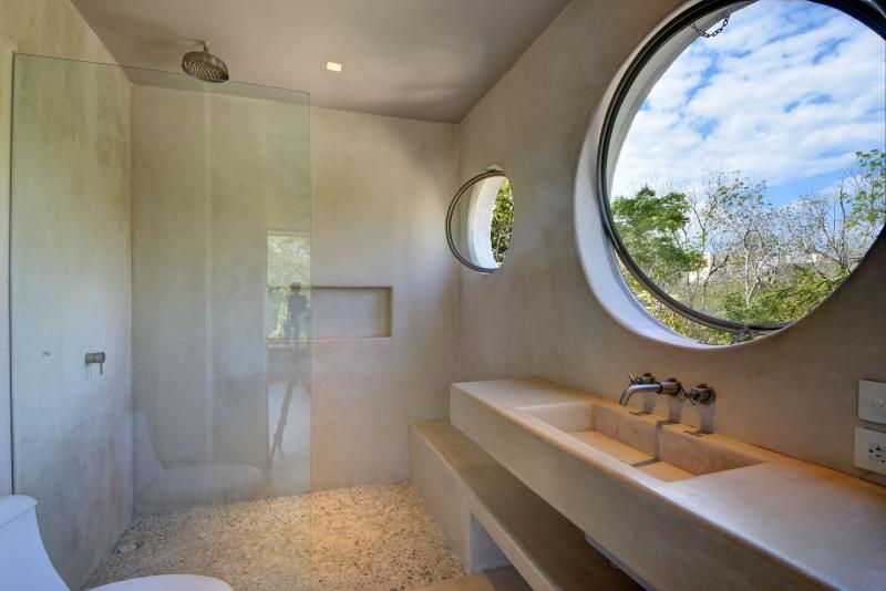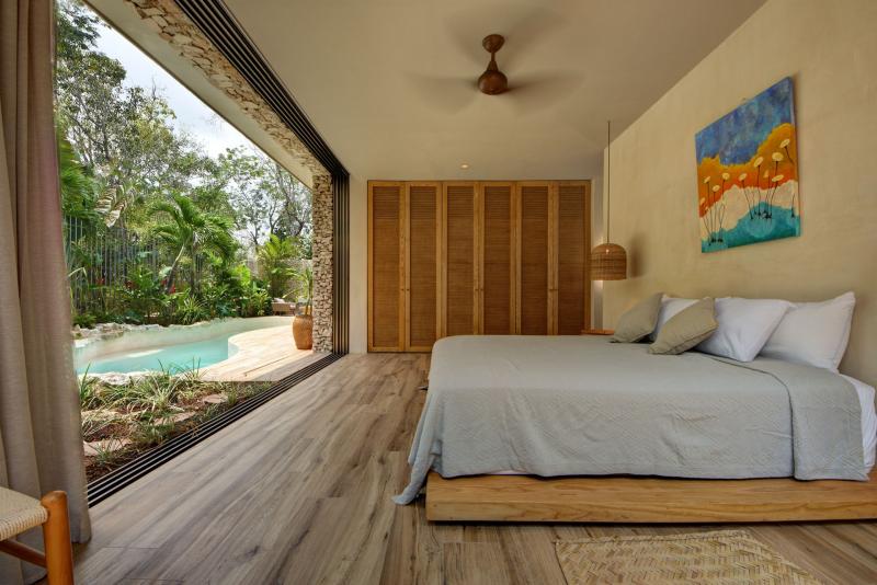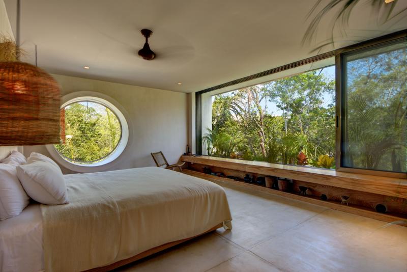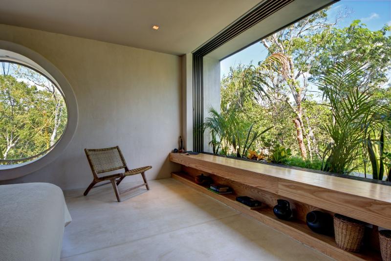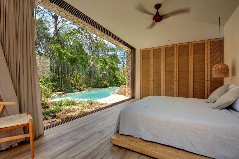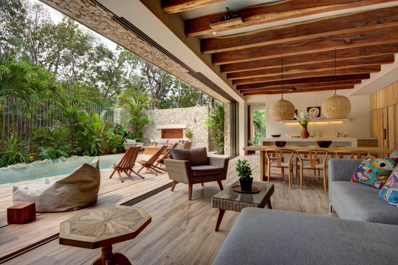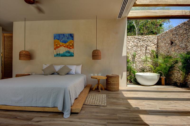 There is a beautiful connection between the indoors and the outdoors. The living area fully opens to the pool. The master bathroom has an open air bathtub in the garden - soak and watch the stars. The open rooftop is the ultimate sunset spot with jungle views.