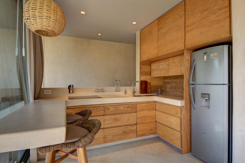 The 4th bedroom is a studio complete with a kitchen and private bathroom. It is a beautiful space with incredible views, perfect for guests who would like a little more privacy from the rest of the group.
