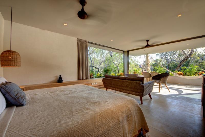All 4 bedrooms have king beds (one can be 2 twins by request), ensuite bathrooms, custom closets, and large opening windows that fully open to the cascading tropical plants and greenery that surround the house.