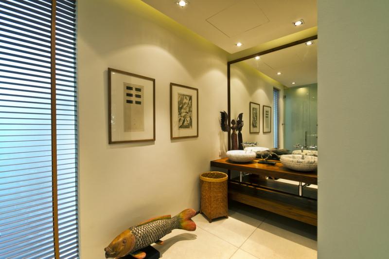 Heading down a few steps from the main floor, the mid-lower lever is a dedicated health and fitness area that includes a gym with the latest exercise machines, opening to the lower seaview pool deck, a dry sauna, a steam room, a large jacuzzi and a massage room for private spa treatments. A large changing area and shower compliment the resort style facilities.