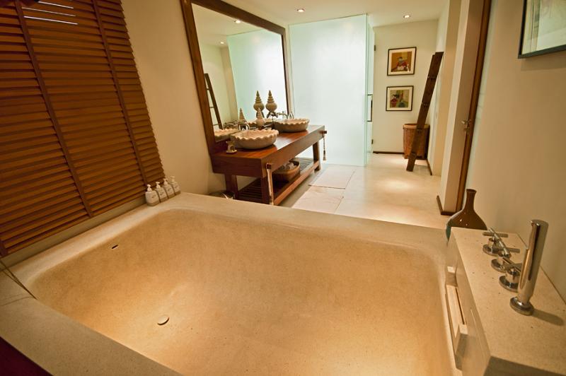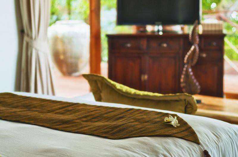 King size bed, En-suite bathroom with tub and shower, Alfresco shower, Air conditioning, Ceiling fan, Safe, TV, DVD player