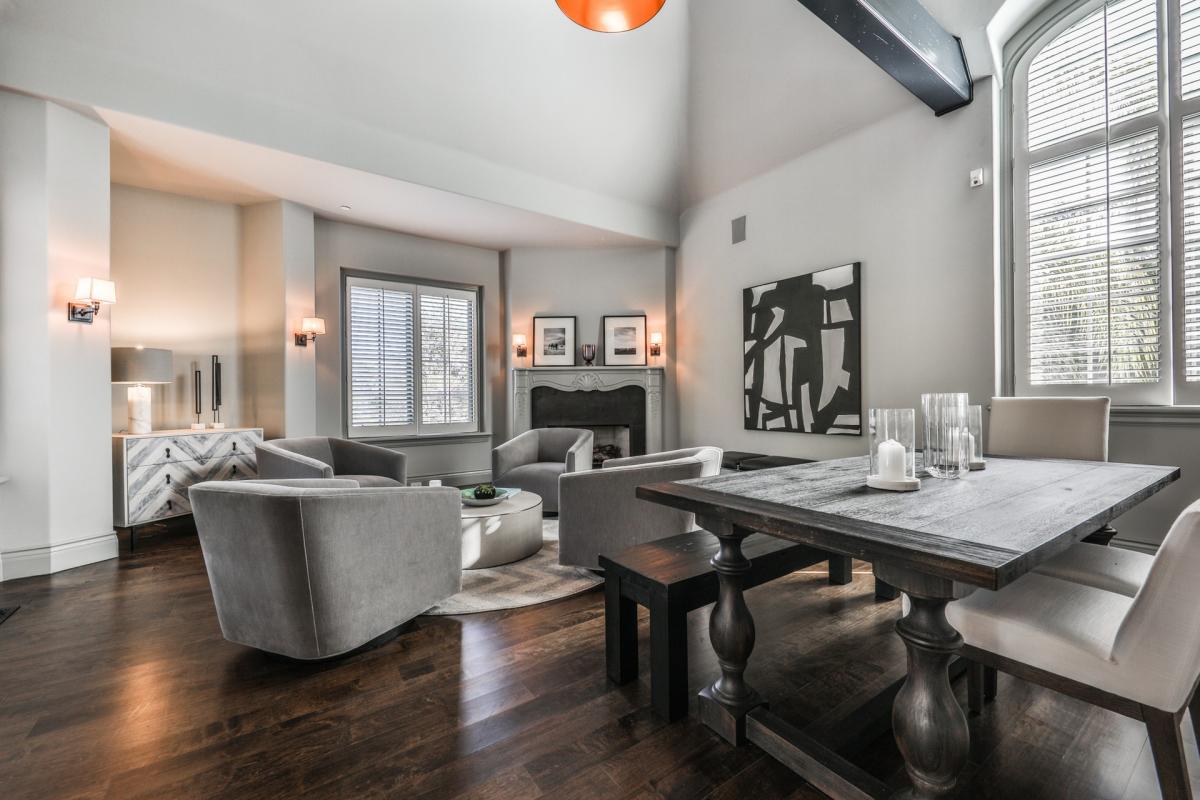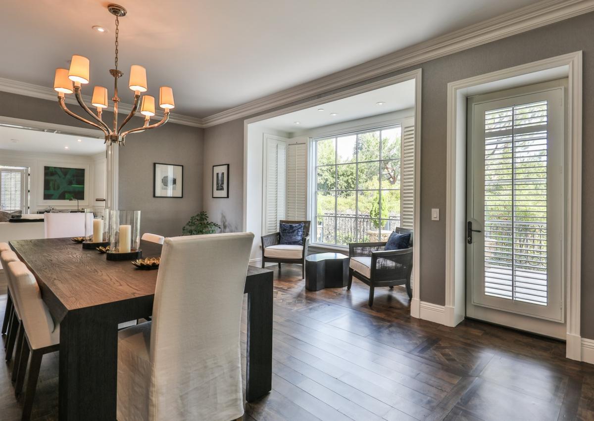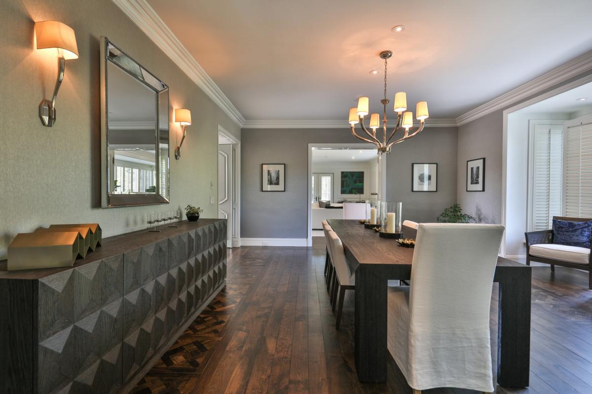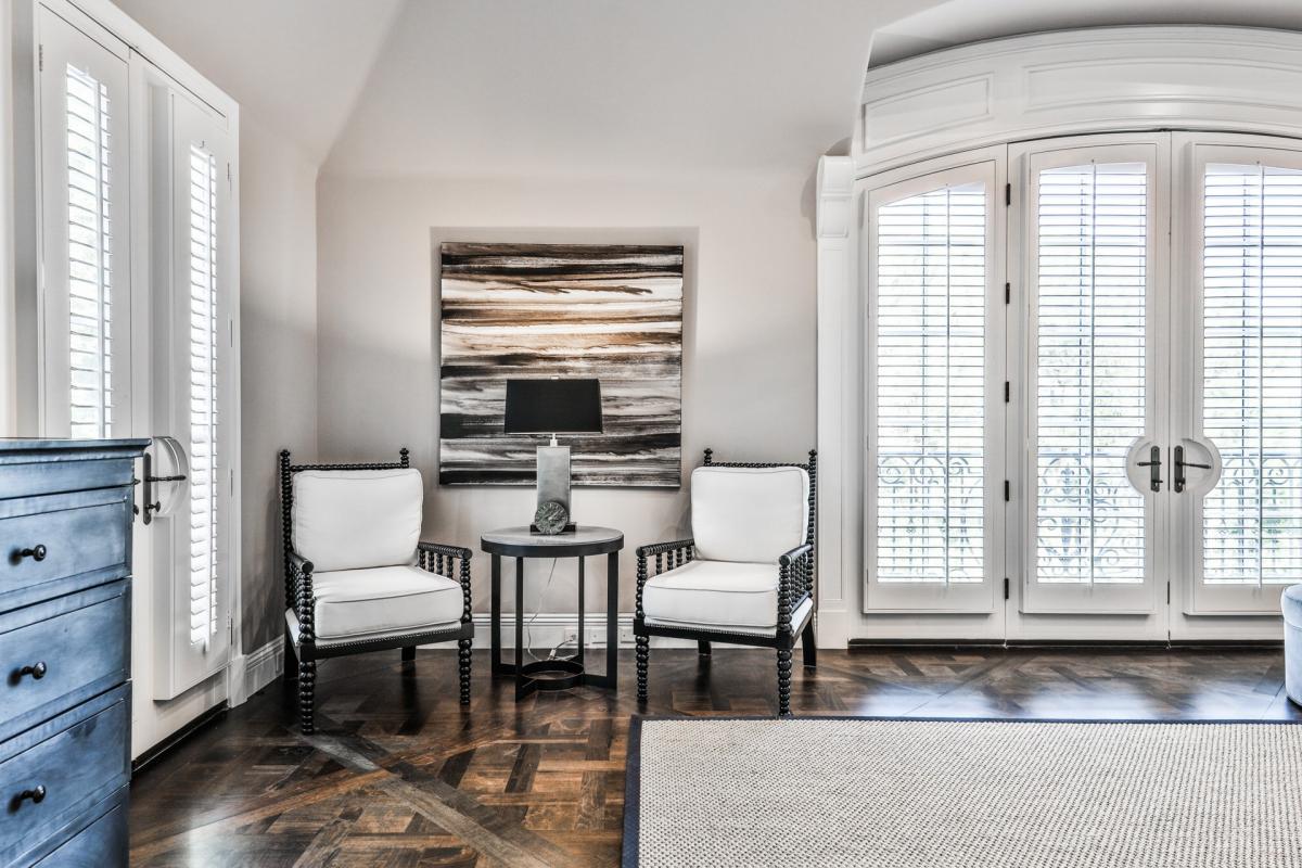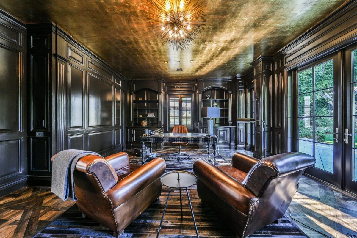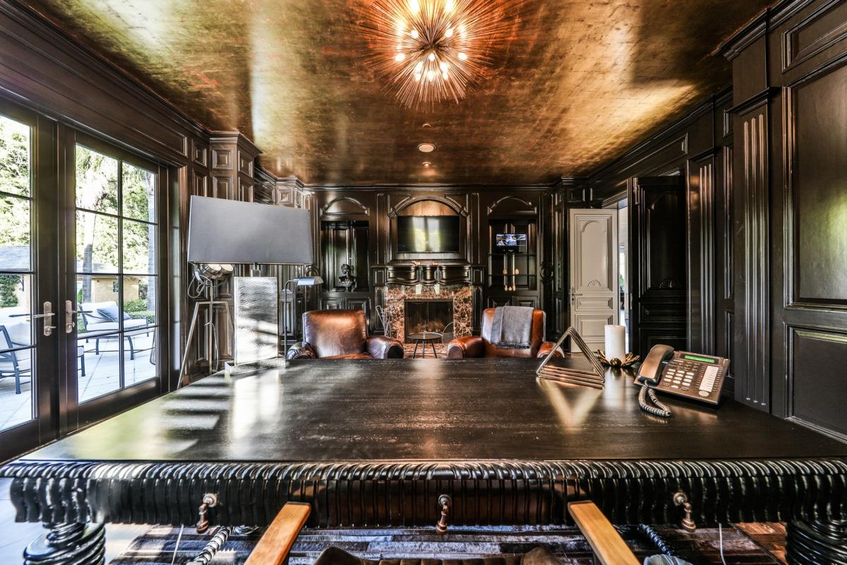 The Allure Estate’s French doors open to the villa's interiors, creating a lovely current of space and air. A hearth-warmed salon invites you to pre-dinner cocktails before gathering around the dining table for eight, while the living room is perfect for relaxed gatherings, with its comfy sectional and flat-screen TV. A separate parlor beside the terrace features a gilt ceiling and sunburst chandelier. There are multiple options for entertaining in the evening, if you are not out and about enjoying the myriad delights of Los Angeles.