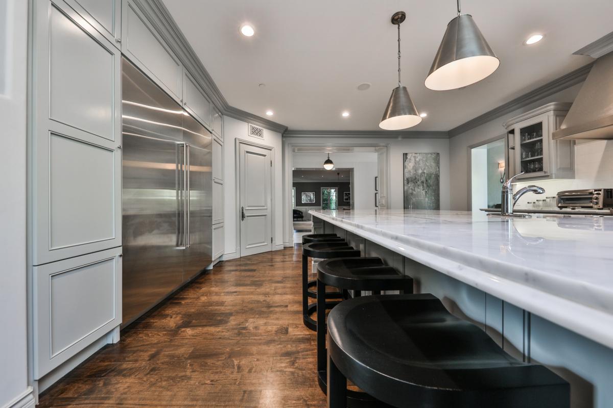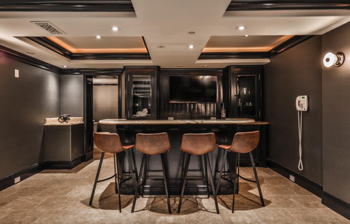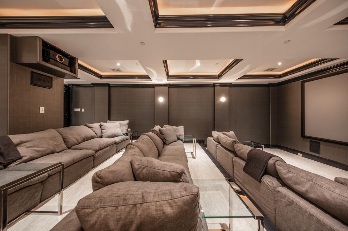 The vacation home’s kitchen is a chef's dream, with high-grade appliances, a dual range, and a large, marble-topped island. Perfect for engaging a private chef to cater your vacation, should you be motivated to do so. The kitchen opens directly to a cocktail lounge and second dining table for casual meals. The outstanding home theater features cinema seating and an expansive screen, and the adjoining parlor includes bar and black-felt pool table. The villa also boasts a well-equipped fitness room. When it comes to Beverly Hills, CA vacation rentals and homes, there are few that compare to this level of luxury and convenience.