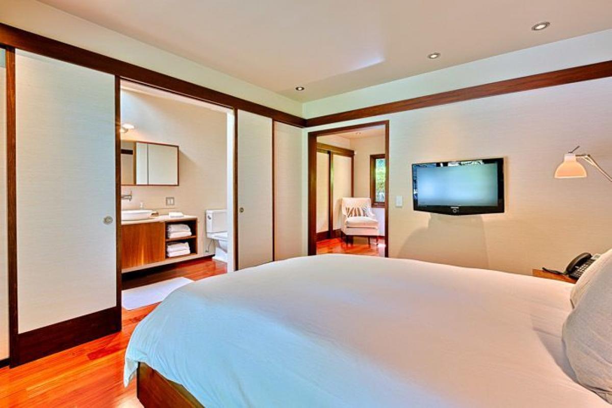 Enjoy the pool surrounded by lush tropical foliage that allows for the utmost privacy on your relaxing getaway. Birdview Beach Villa draws design and architechtural inspiration from both Hawaii and Bali and incorporates the oceanfront patios, cozy lounge areas, outdoor dining and entertaining, and lagoon-style pool.