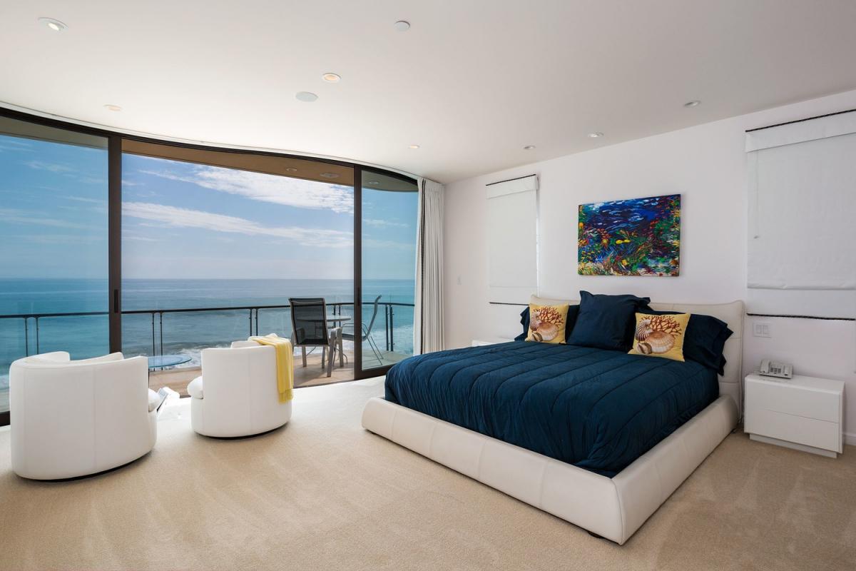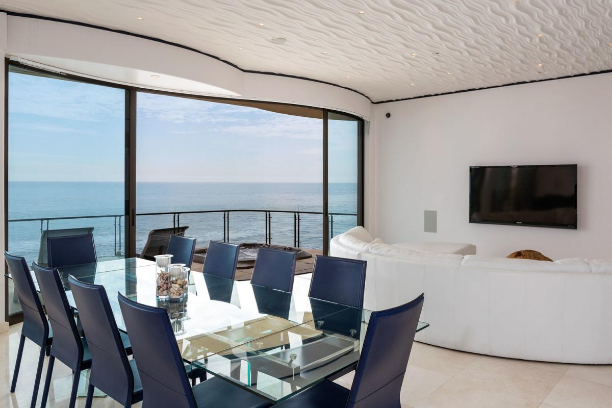 Villa Dolphin Malibu features an unprecedented 55-feet of Malibu beach frontage on Malibu's most well-known road. This luxury villa hosts huge ocean front decks with a Jacuzzi, marble flooring, bar, elevator, and filtered water. The fully equipped gourmet kitchen complete with both a dumbwatier and Miele appliances, double ovens, warming drawer, six burner range, and steam oven - this kitchen will make the most accomplished chef inspired to create a delicious meal! Villa Dolphin Malibu is also furnished to the nines and includes luxurious Italian leather furniture. She features direct beach access and short walks to the nearby shopping and restaurant area.