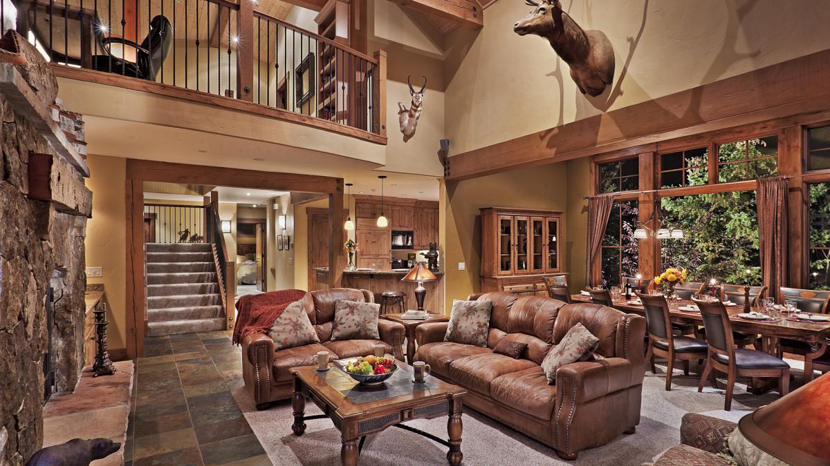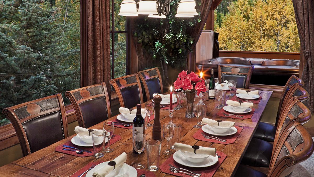 Just two minutes away from the Thunderhead lift, you will find Bears Grande. This spectacular lodge offers two great rooms, eight bedrooms, 11 bathrooms, covered decks, mountain views, luxury leather sofas and large flat screen TVs. The open floor plan incorporates a gourmet kitch equipped with Wolf and Sub Zero appliances, custom alder cabinets and granit counters. The kitchen opens to the dining area with a custom hand crafted ten seat dining table that compliments the kitchen and other wood work.
