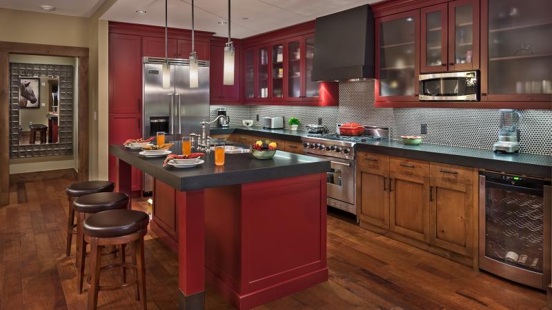 All One Steamboat Place residences feature luxurious furnishings and décor throughout the home. Each master bedroom offers a gas fireplace and the master bath features a steam shower and Jacuzzi tub. In this residence 2 bedrooms offer a King bed with private bath, one offers a Queen bed with two full-sized bunk beds and a private bath, and the fourth offers 2 sets of twin bunks, also with a private bathroom.