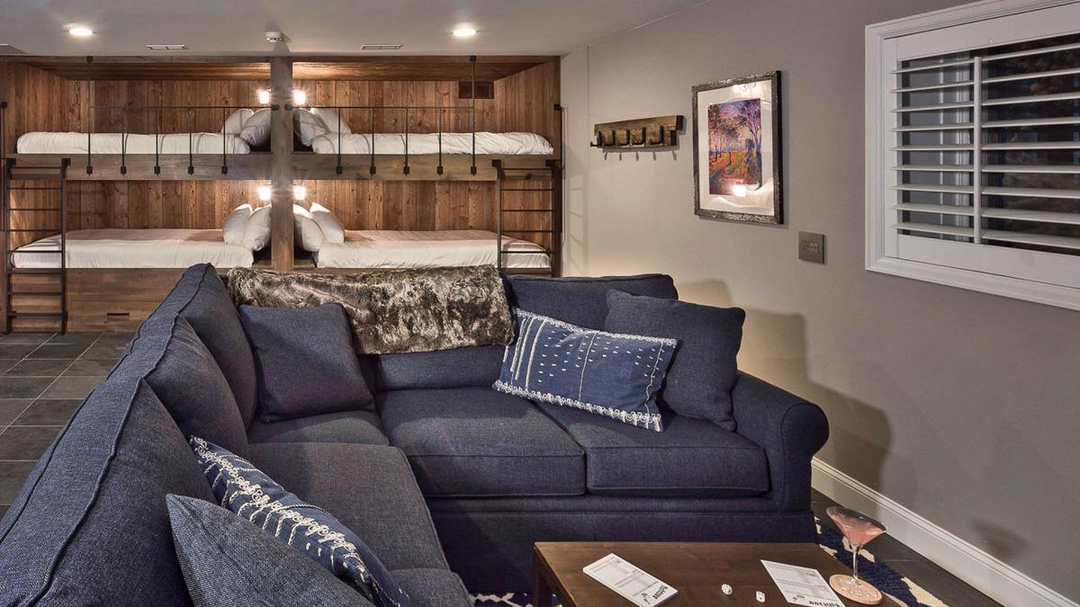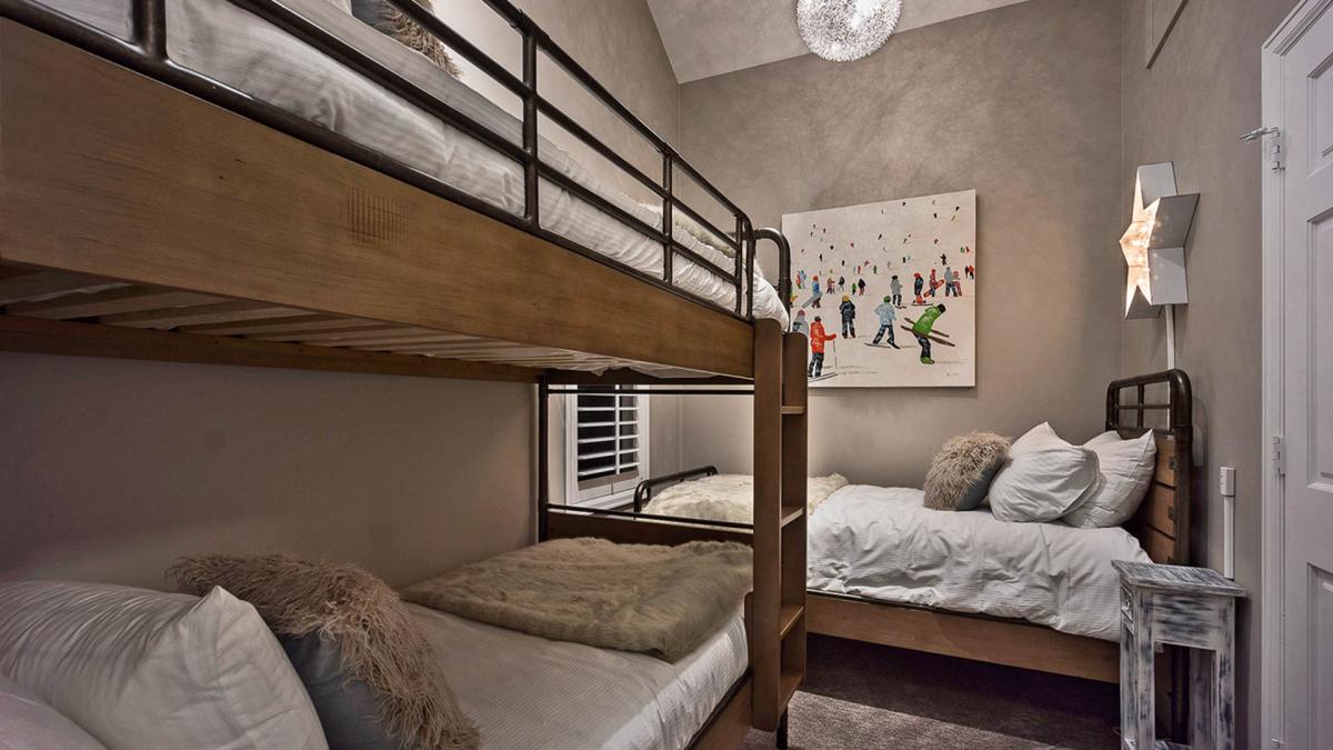 The lower level bunk/rec room is the perfect place for teens or young adults. 4 built in queen beds surround a monster 75" flat screen TV for the ultimate movie or sports experience. The rec room opens to the private hot tub deck where you can relax and experience the peace of the mountain view after your day of adventure on the slopes.