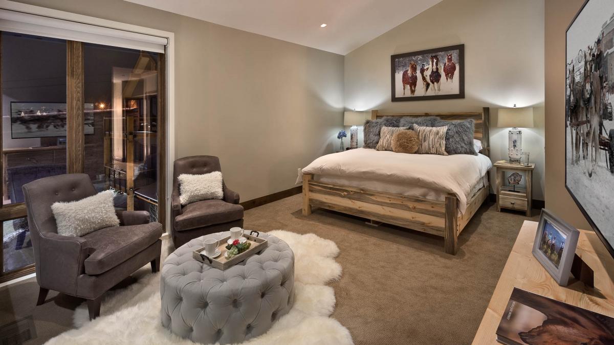 The main floor of Wildhorse Chalet was designed with entertaining in mind. The open layout creates a flow from the living room, dining room, itchen and balcony for all your guests to enjoy. The stacked stone fireplace keeps the area warm and cozy as you enjoy movies on the big screen (65 inch) or just enjoy the company of your group. The fully equipped gourmet kitchen will inspire all chets. This modern space is both stylish and well equipped with professional grade appliances, granite counters, Nespresso macine and outdoor gas grill. The dining area comfortably sits eight while the kitchen can accommodate an additional three. Al fresco dining can also seat 8 during warmer months. All dining areas provide a wonderful backdrop as you enjoy your chef's creation.