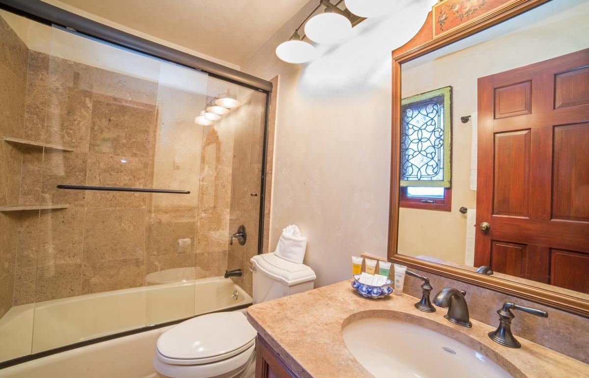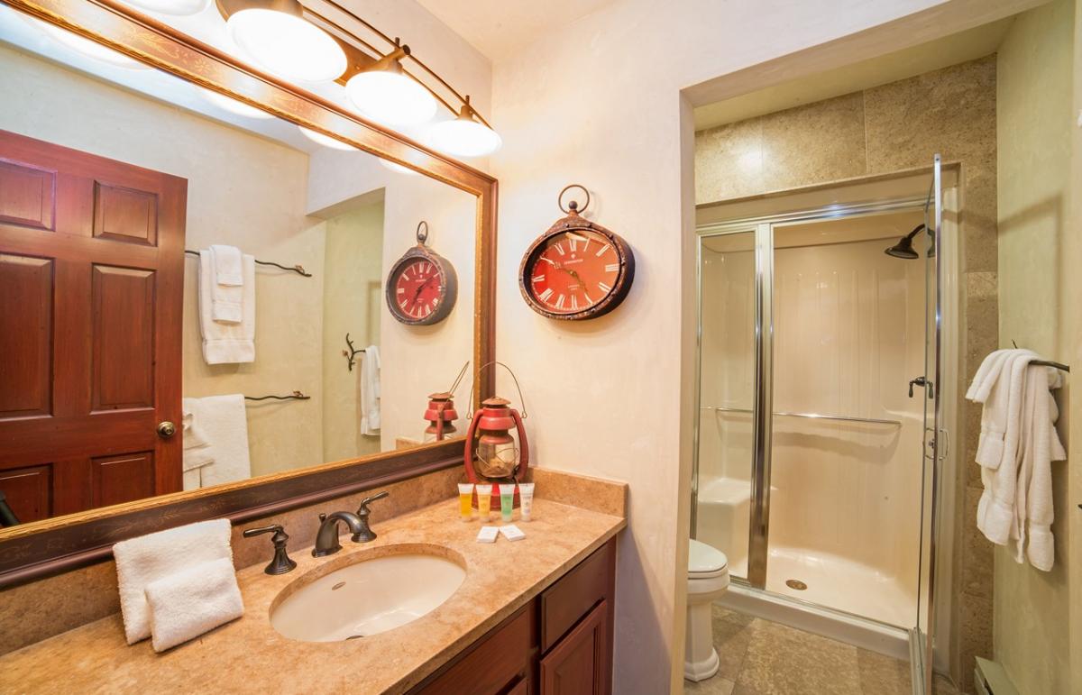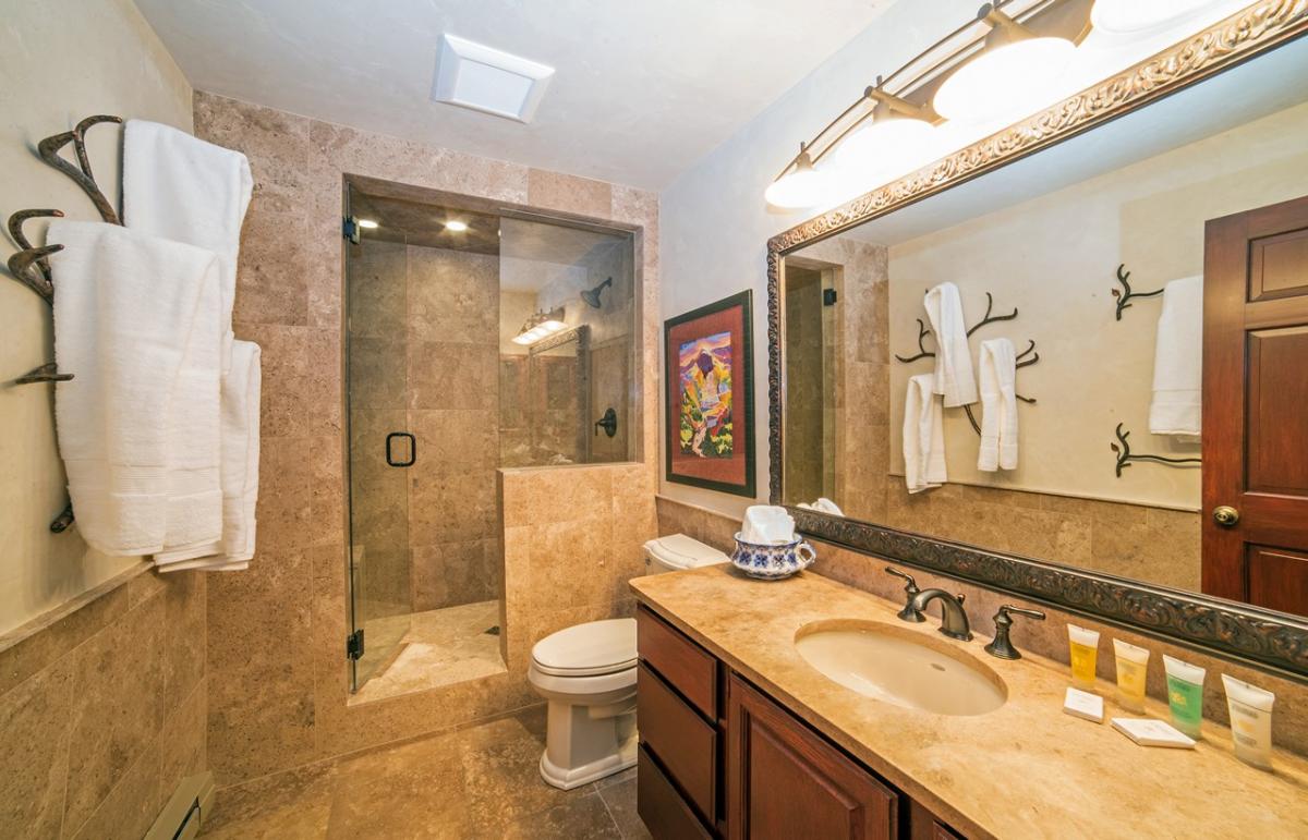 • Bedroom 2: King bed (can be converted to two twin beds), en suite bathroom with shower and bathtub, TV