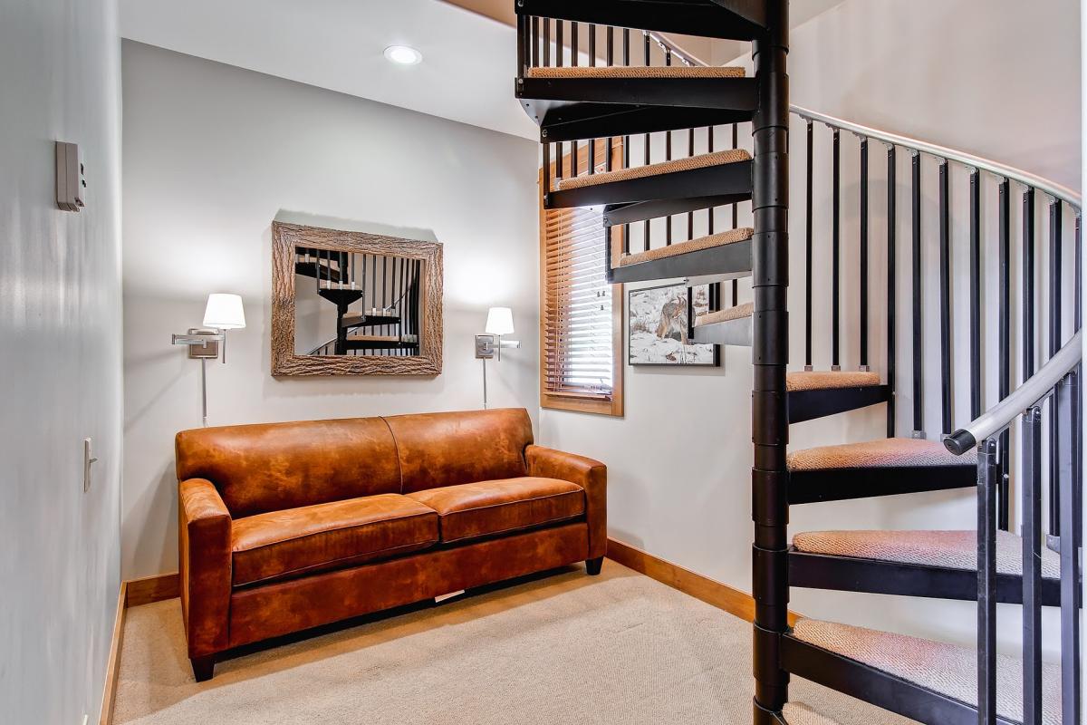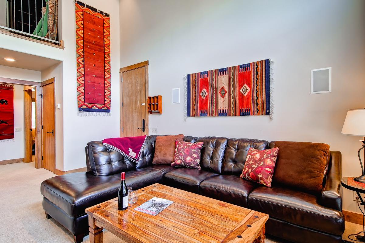 Unit 502: This high-end one-bedroom, loft retreat is for the guest who wants not only a bedroom but also a full-size living area and full kitchen. The master bedroom has a queen bed and the loft has bunk beds with a full on the bottom and a twin on top. There is a sleeper sofa in the alcove. This large unit has ski in ski out and great views.