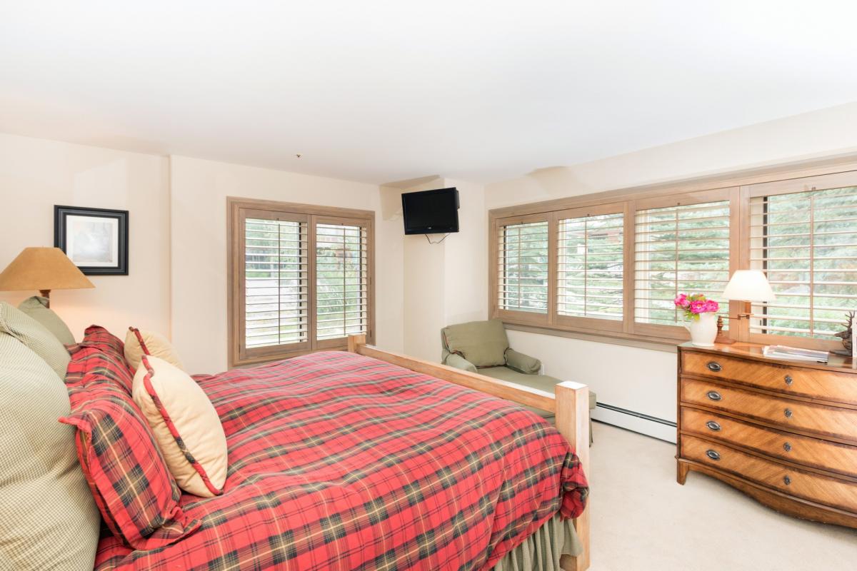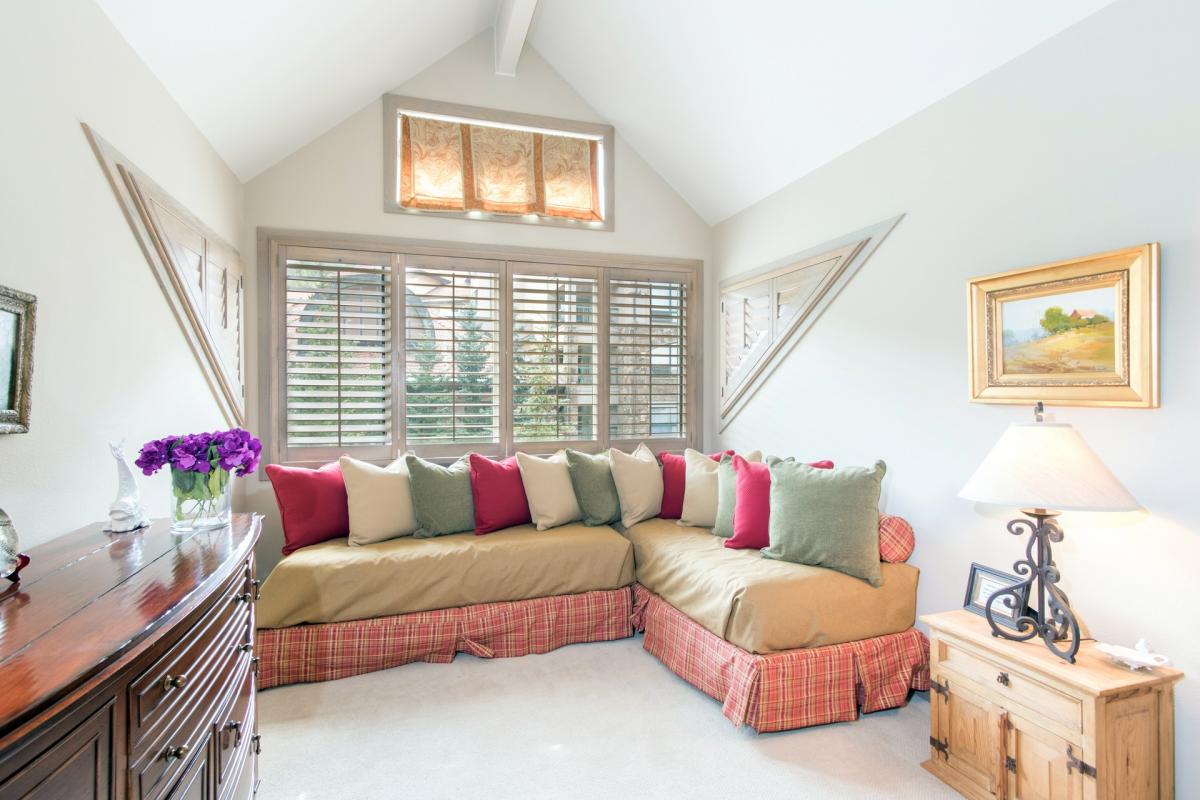 Located on the upper level, the large master features an ultra comfortable king bed. This room is complete with a relaxation corner with flat screen television. The master bath features dual sinks, a jetted bathtub and steam shower. If needed, the relaxation corner can easily be converted to a sleeping area with two twin size beds.